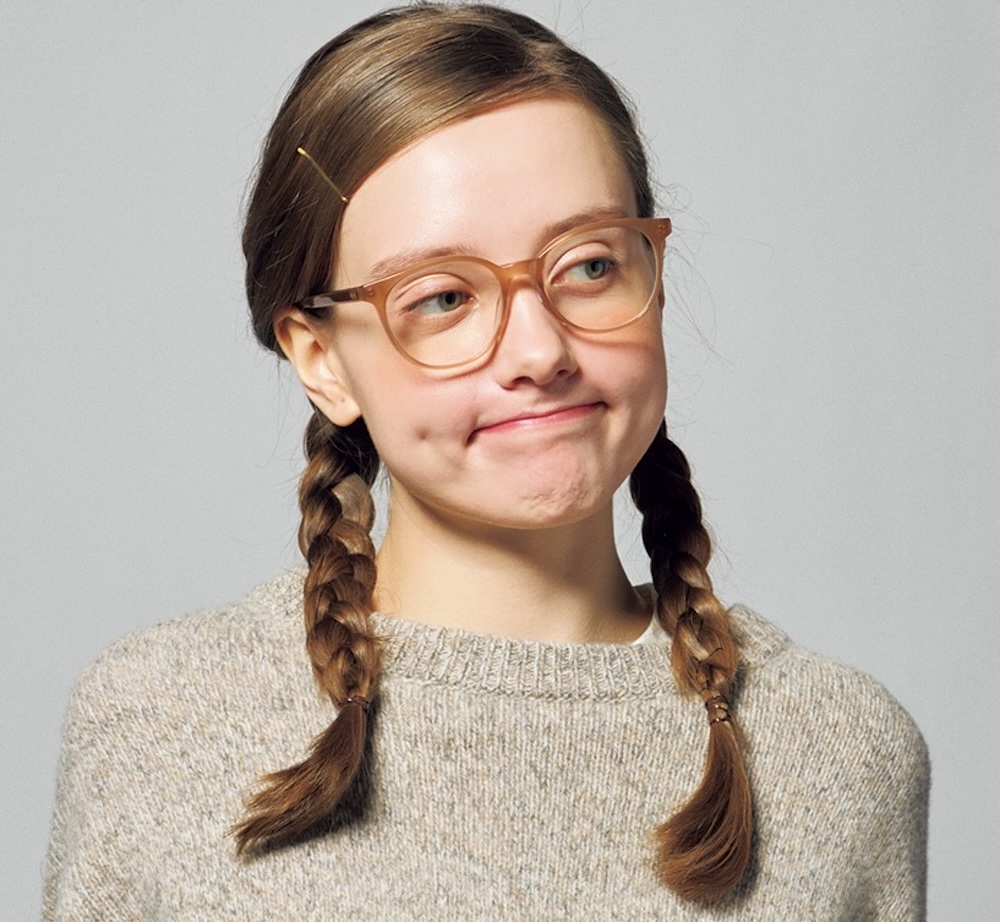 「No.221」は、キリッと知的なムードが香るウェリントンモデル。ラフな装いやヘアでも、持ち前のシャープさでスタイルを格上げしてくれます。はたまた、黄味がかったクリアフレームを選ぶと、どこかナードな雰囲気が漂って、レディな装いのハズし役にぴったり。縦長の形状かつオーバーサイズなので小顔効果も期待できそう。