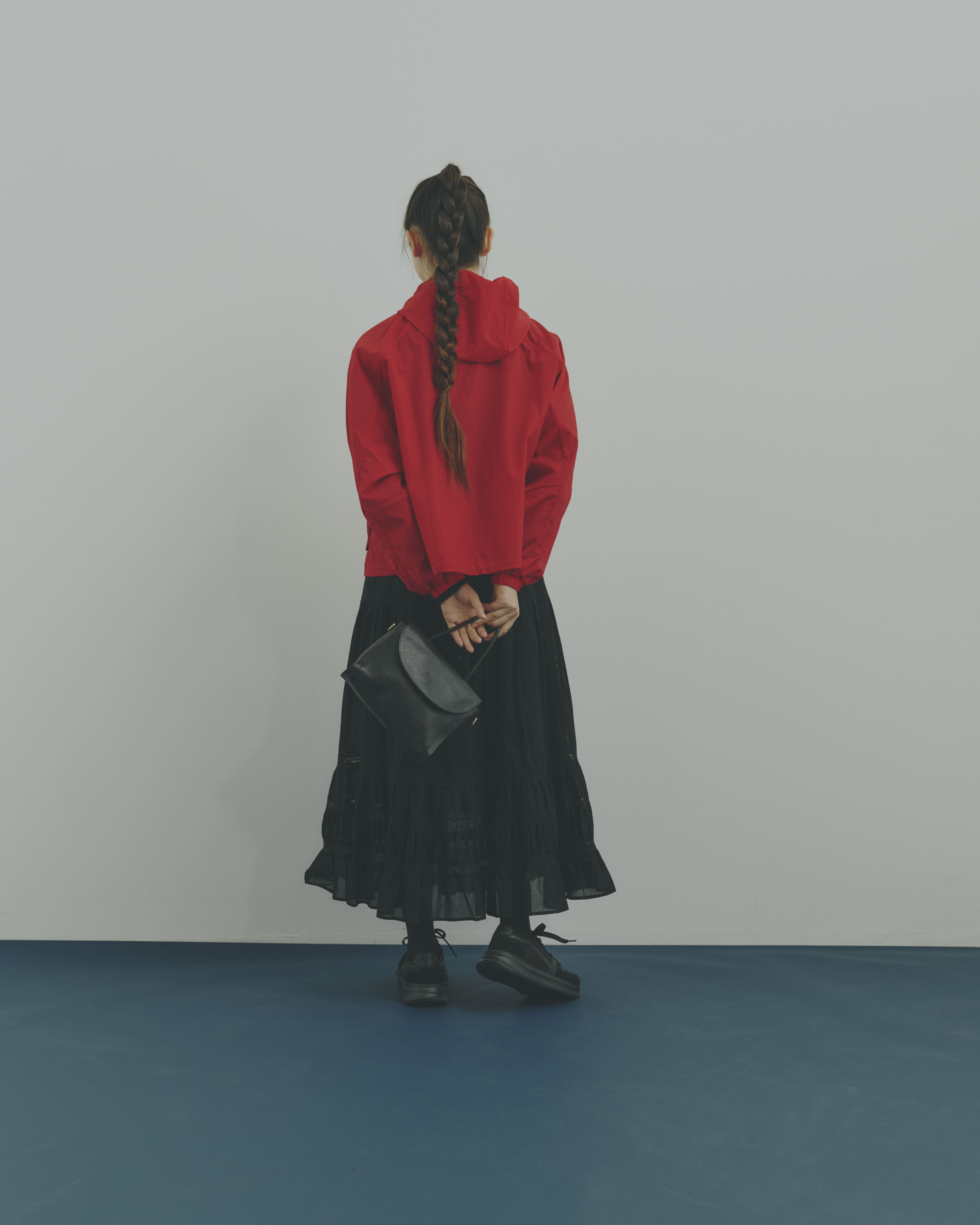 シャカシャカのナイロンジャケットに、フリルがひらりと揺れるレーススカート。相反するボーイとレディのバランスを引き寄せてくれるのが、赤と黒のコントラスト。トップスとボトムを50:50で取り入れれば、赤のエネルギッシュなムードも、黒のスタイリッシュさも、そのままに。2色が引き立て合う、大人のバイカラースタイルが完成です。