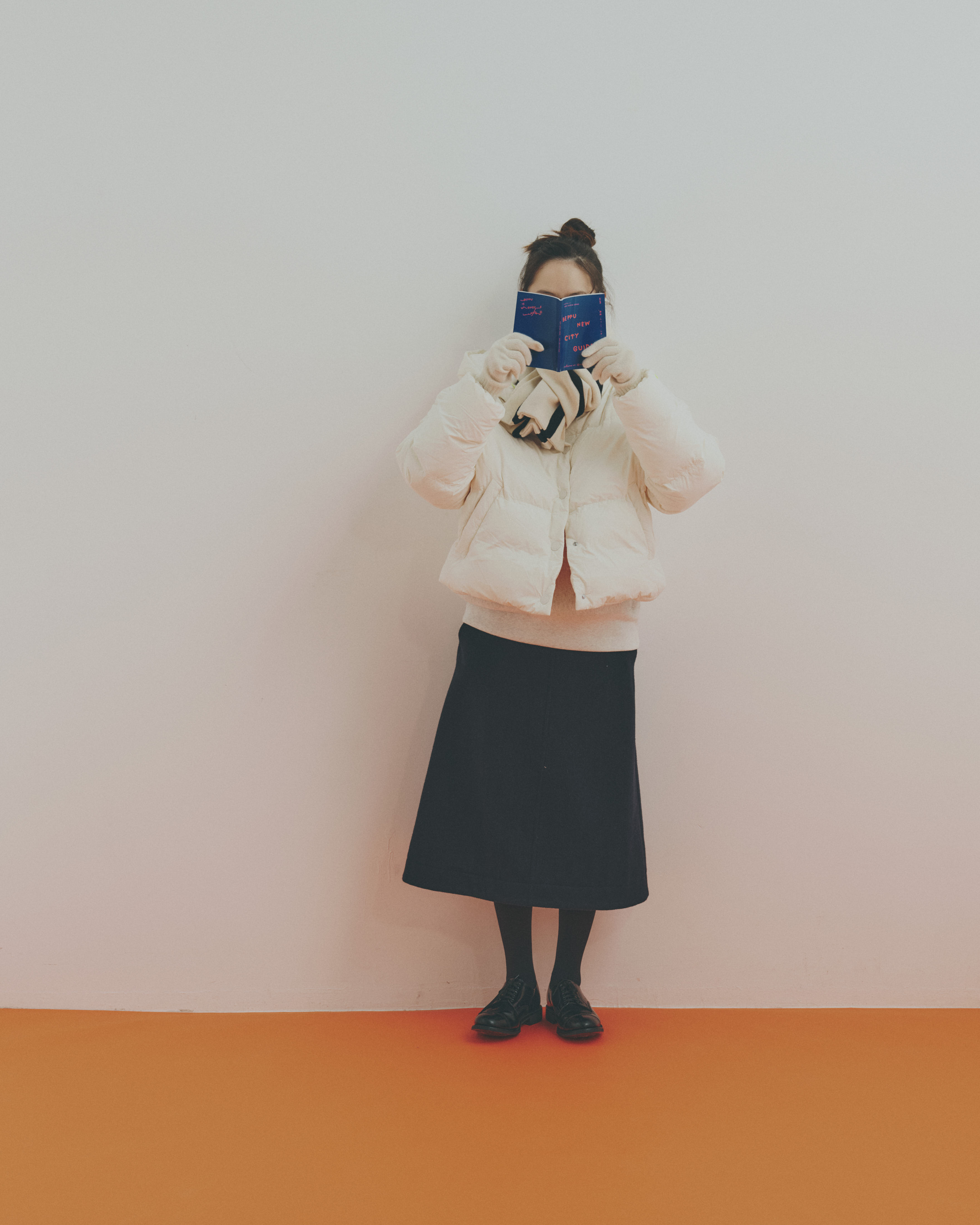 ホワイトのダウンに、ネイビーのスカートを重ねたクリーンなバイカラースタイル。ネイビーを多めにすれば凛とした表情に、白を主役にすれば軽やかな印象に。マフラーや手袋も白ベースで揃えて、色数は増やさずに統一感をキープ。白は白でも、くすみホワイトやアイボリーを選んで違いをつければ、奥行きのあるスタイリングに導いてくれる。