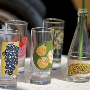 植物や果物をモチーフにしたドローイングが施され、まるで花を飾っているかのような華やかさを演出します。