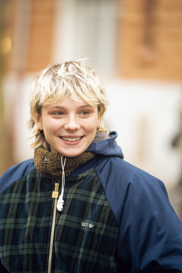 《アディダス》のアノラックがボーイッシュなNine。ハイトーンと地毛活かしダークのMIXカラーが軽やかで、彼女のやんちゃな雰囲気にピッタリ。たっぷりレイヤー入りのミディアムウルフは、これくらい自由に遊ばせたい。