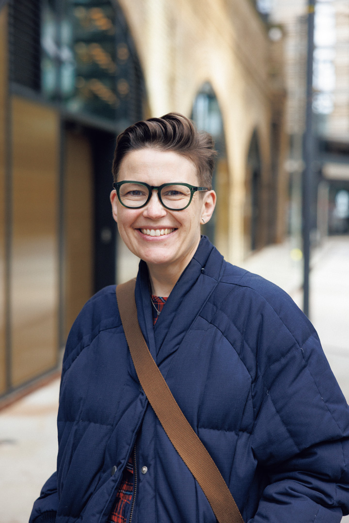 刈り上げ&コームオーバーヘアがハンサム・ウーマンのお手本みたい! タイトにまとめずふんわり柔らかさを残すのが、やり過ぎにならないコツ。深いグリーンのセルフレームもスタイリッシュで、彼女の持ち味にぴったり。