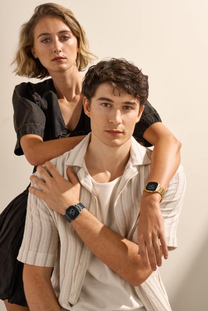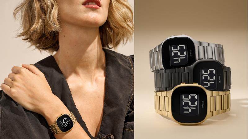 幾何学的でありながら有機的なフォルムが特徴的な「MELLEM(メレム)」にレトロなデジタル表現を融合した「MELLEM DIGITAL(メレム デジタル)」。幾何学的な構造美と、北欧らしい柔らかさが共存し、上質でありながら控えめな存在感を放ちます。日常に静かに溶け込むデザインは、男性のオンオフスタイルはもちろん、女性のパンツスタイルや洗練カジュアルスタイルなど、幅広いスタイルにフィット。力強さの中に繊細さを感じさせる、ユニセックスで楽しめるモデルです。