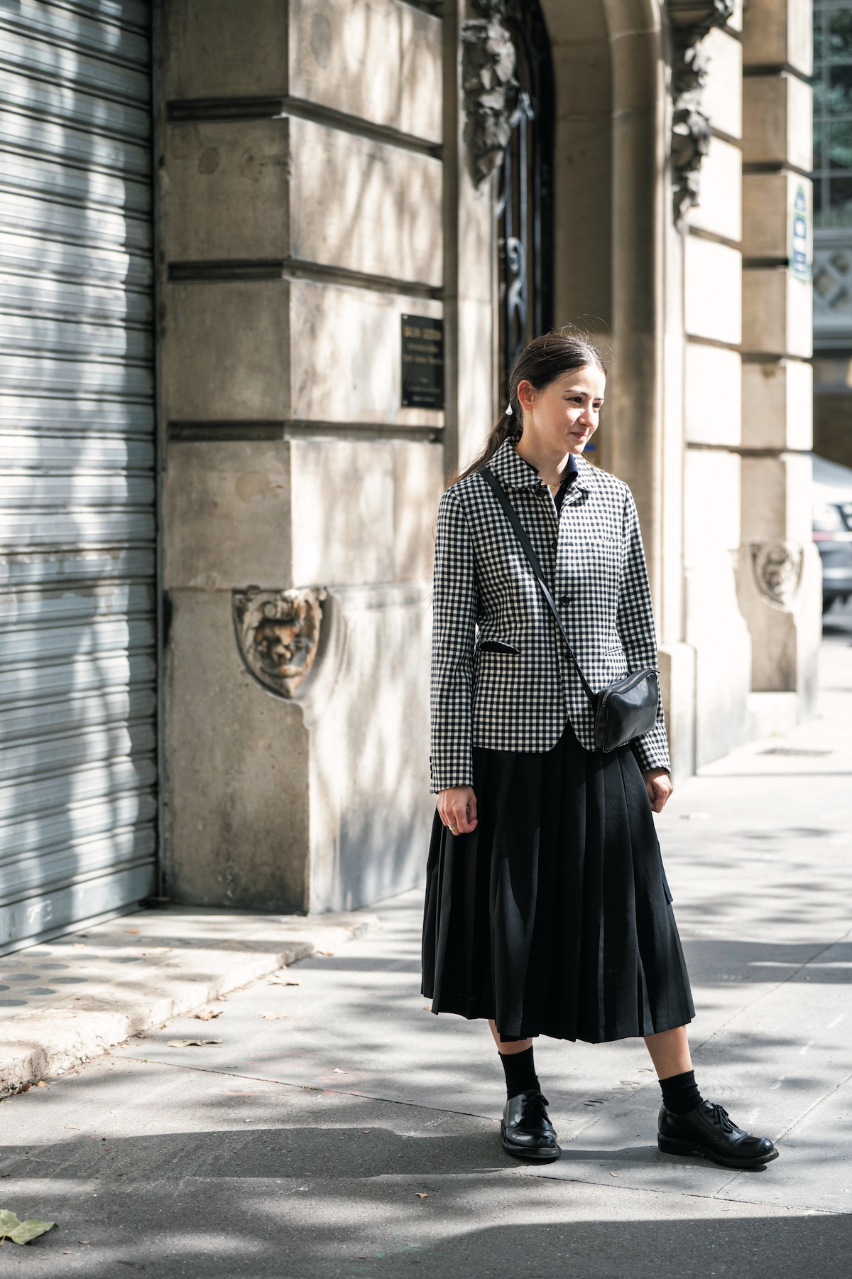ファッション感度の高い編集者たちがパリで始めたセレクトショップ〈ザ・ブロークン・アーム〉に行くともれなくお洒落さんに出会える。例えば常連だというTamara。ギンガムチェックもモノトーンならクールだね。