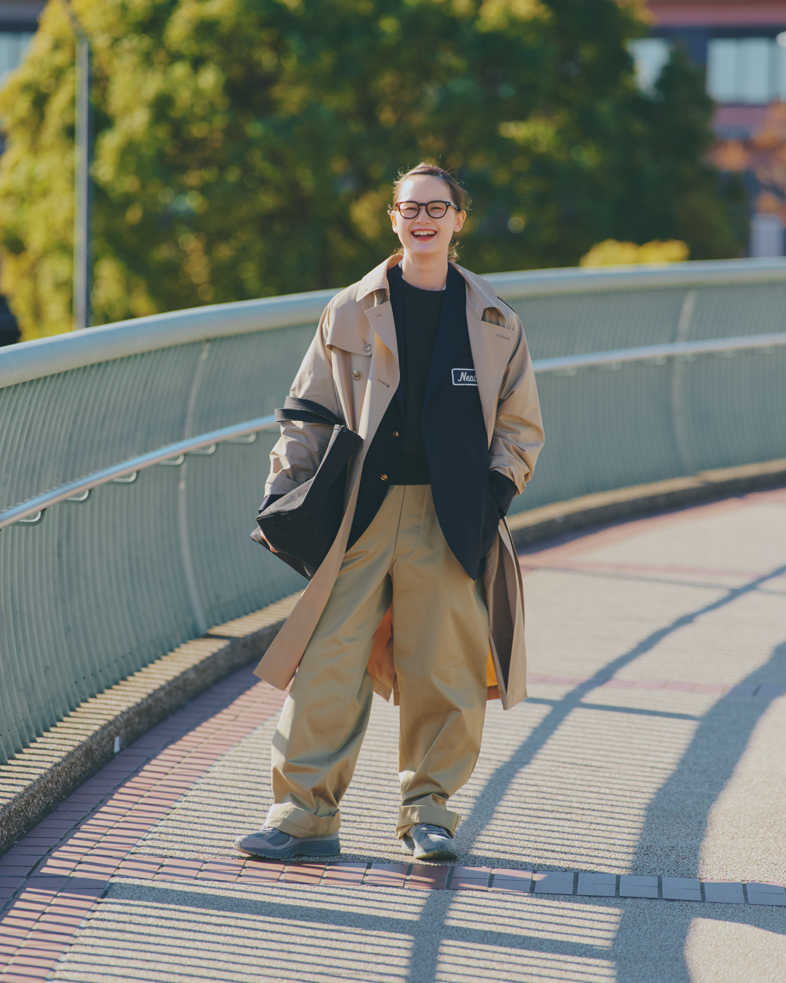 お洒落なジェンツをお手本に、紺ブレザーとトレンチコートを粋にコーディネート。コートとチノパンツの色を揃えて、大人の余裕を感じさせて。きちんとした雰囲気はありつつも、このゆるっとしたサイズ感がこなれた着こなしにしてくれる。