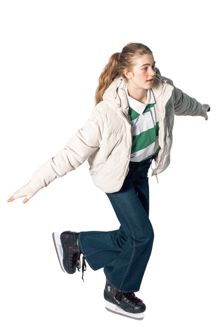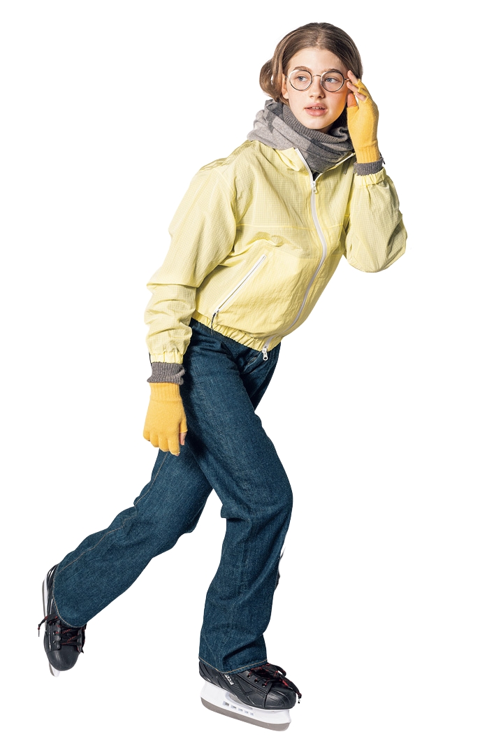 ブルゾン¥37400/L.L.Bean(エル・エル・ビーン カスタマーサービスセンター)、ラガーシャツ¥7700/Levi’s® (リーバイ・ストラウス ジャパン)、デニムパンツ[2月発売]¥25300/ROLLA’S(ジャック・オブ・オール・トレーズ プレスルーム)、アームウォーマー¥13200/elegancese(ティータイム)
