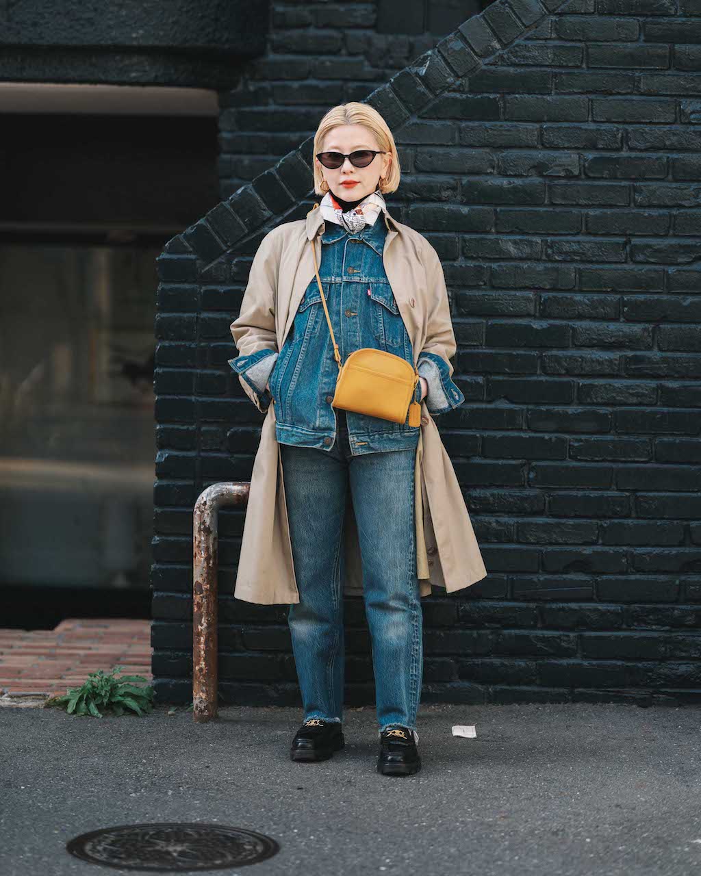 コーディネート4:トレンチ&デニムジャケットで春の上級レイヤード