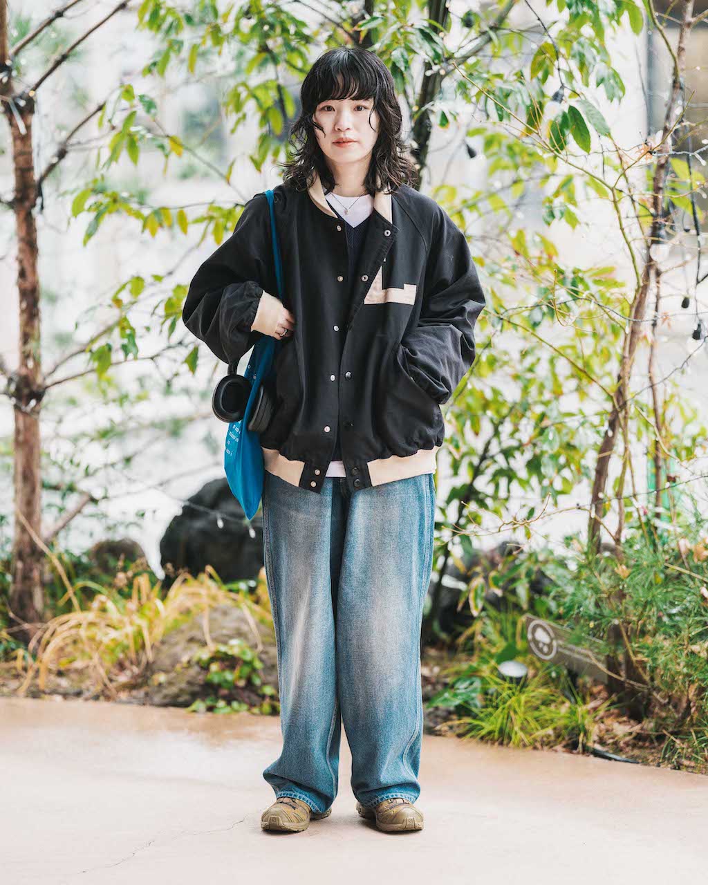 コーディネート2:スタジャン&デニムでルーズな心地よさを纏って