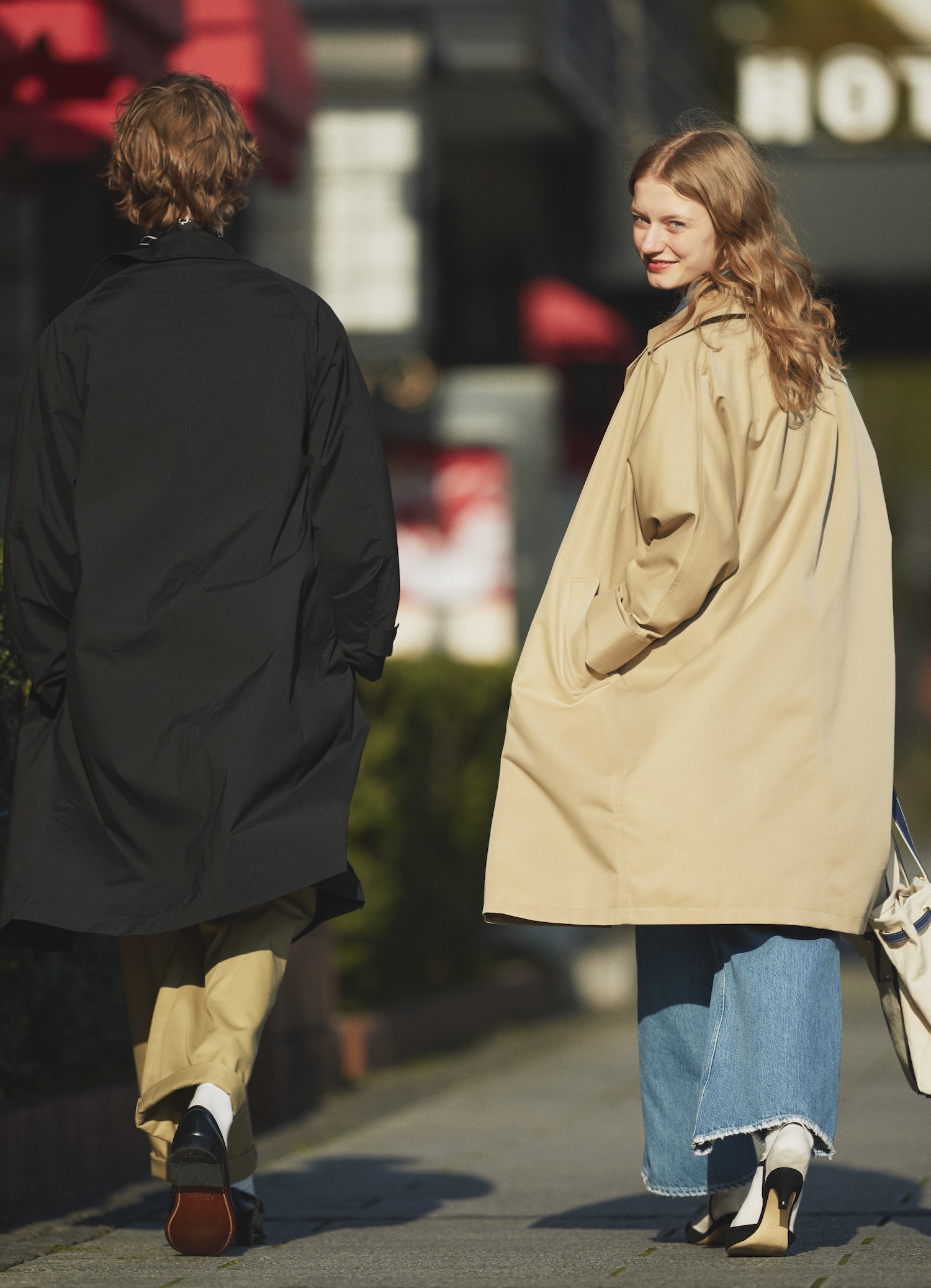 シンプルな装いに洒落感が漂うのは、アイテムの強さゆえ。削ぎ落とされたトレンチコートは、ハリのある生地が立体的なフレアシルエットを際立たせ、無駄がないのに存在感たっぷり。ルーズなフレアデニムを合わせて、王道トラッドスタイルに新しい風を吹かせて。