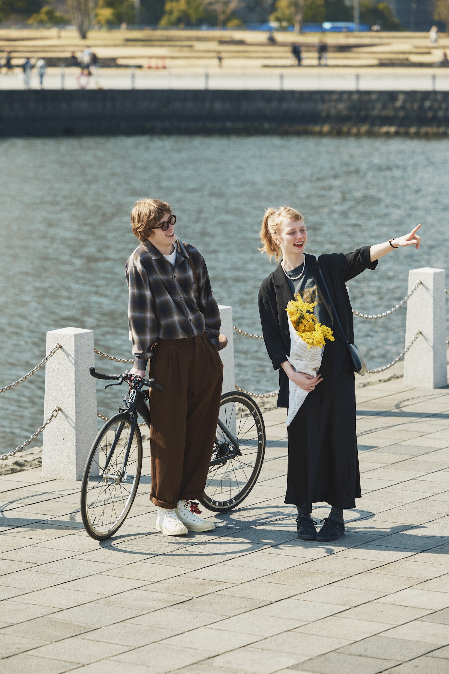 ブラックやブラウンにも、春の表情がある。バイアスカットのロングスカートは、歩くたび風に揺れて軽やか。通気性のいいジャケットをはおって、春の黒を味方につける。やさしいグラデーションを描くオンブレーチェックの開襟シャツは、うららかな日差しに溶け込むやわらかなニュアンスが魅力。特に予定はないけれど、自分でいられることがただ幸せな、この瞬間。