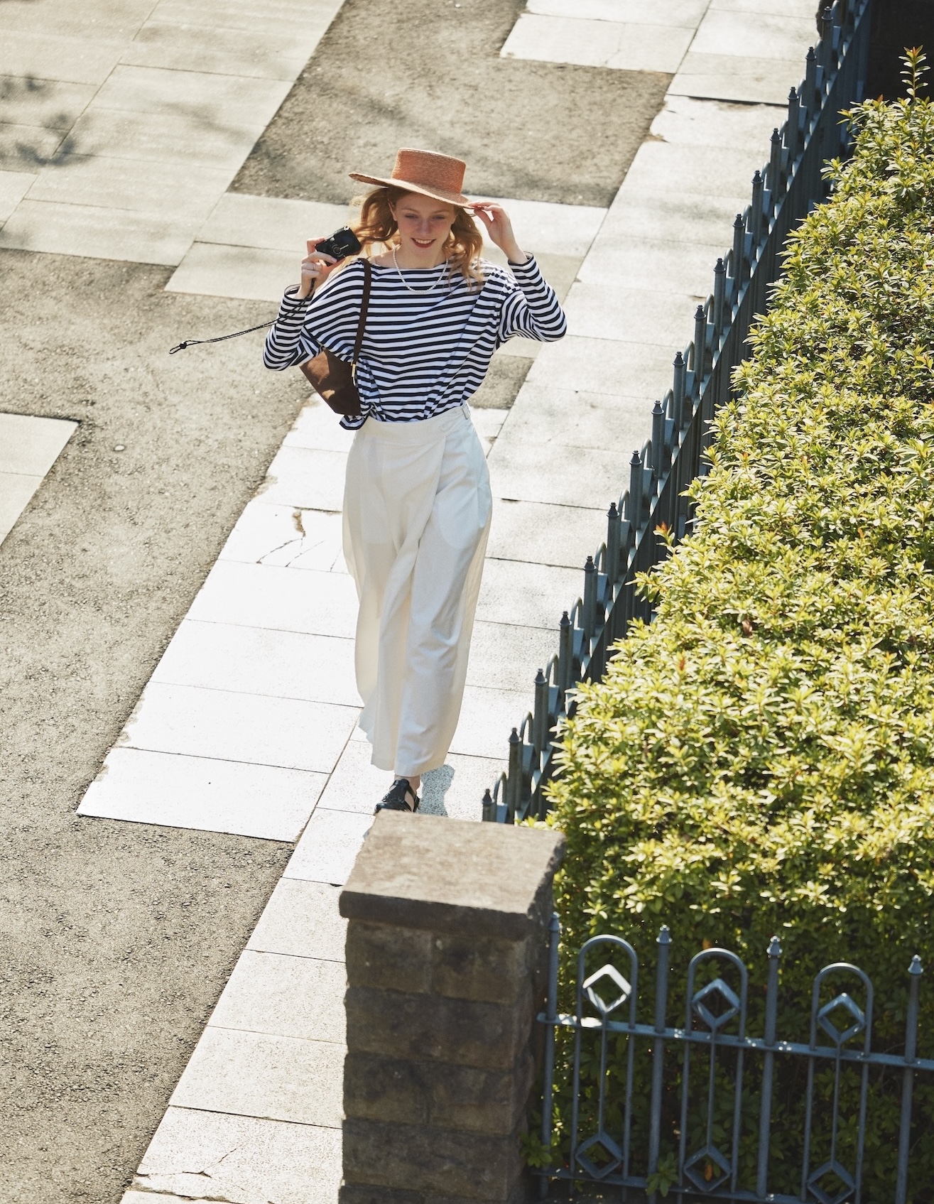 カットソー¥13750、スカート¥16500/ともにROUGE VIF、ハット¥27500/La Maison de Lyllis、バッグ¥75900/MAESTOSO(以上すべてルトリオ アバハウス アトレ恵比寿店)