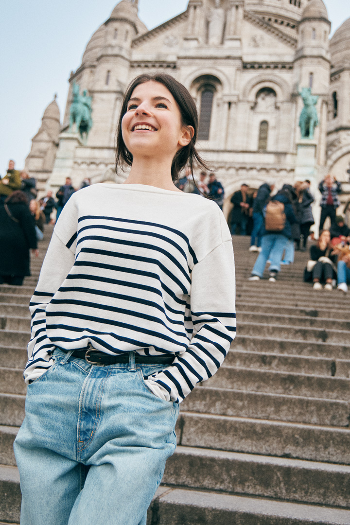 ピカソやシャルロットが愛したボーダー。海軍の制服として採用されていたというのは有名な話。ライン数は、ナポレオンの戦勝数にちなんで“21本のライン”と決められていたとか。もとはバスク地方の漁師たちが愛用していた究極のワークウエア。このボーダーシャツ(セーラーシャツ)をファッションへ昇華させたのは、あのガブリエル・シャネルといわれていますが、そのお話はまた別の機会に。