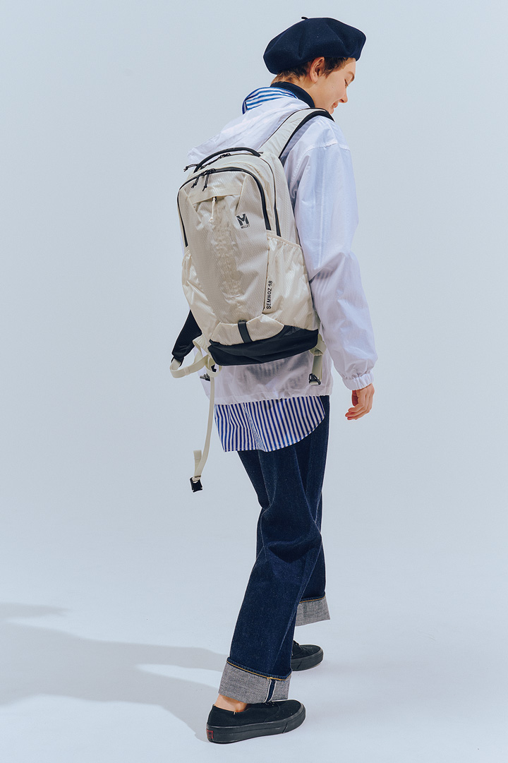 アウトドアに通用する高いスペックは、日常でもその力を発揮。100年以上の歴史がある《ミレー》の「セムノ18」は、超高分子量ポリエチレン繊維を組み合わせた、オリジナルの”リップストップ100Dナイロン”を採用し、とても軽量で頑丈。PCや水筒、雑貨を収納するポケットも充実していて、使いやすさも抜群。