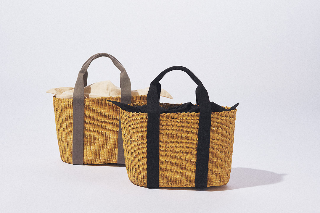 アフリカ・ガーナで育まれた天然素材エレファントグラスと伝統的な編み手法を掛け合わせたカゴバッグ。中身を整理整頓しやすいスクエア型の「カバ ピー ハンドル」は特に人気が高いモデル。付属するインナーバッグの口をきゅっと結べばセキュリティ面も安心。