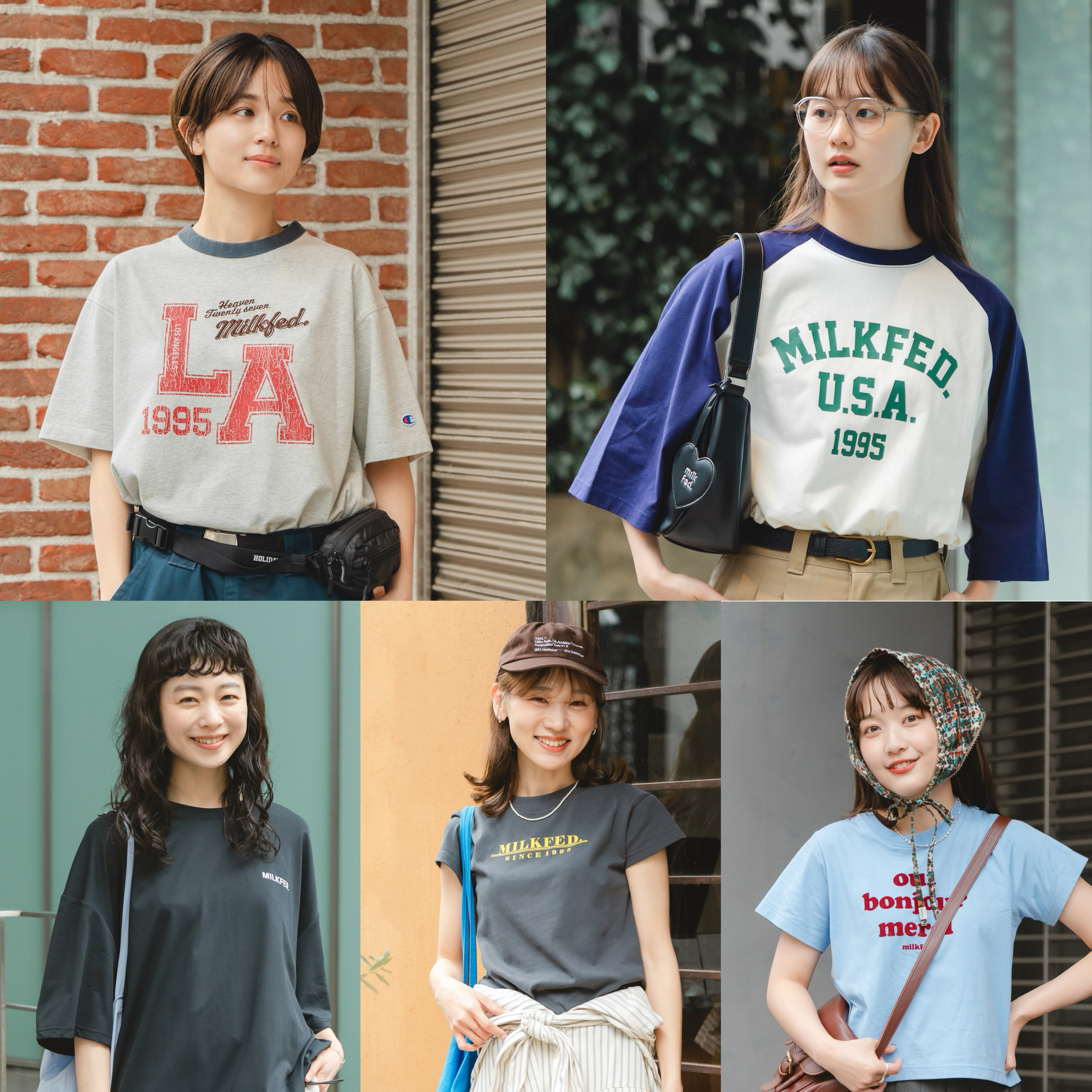 今年もTシャツが大活躍するシーズンがやってきた!一枚で主役になってスタイルが決まる《ミルクフェド》のTシャツはもうチェックした?存在感はありながら、普段のコーディネートにほどよく馴染む、そんな願いを叶えてくれるアイテムが魅力なのです。お洒落さん5人の着こなしを参考に、本格的な夏がやってくる前から役立つTシャツをチェックしよう。