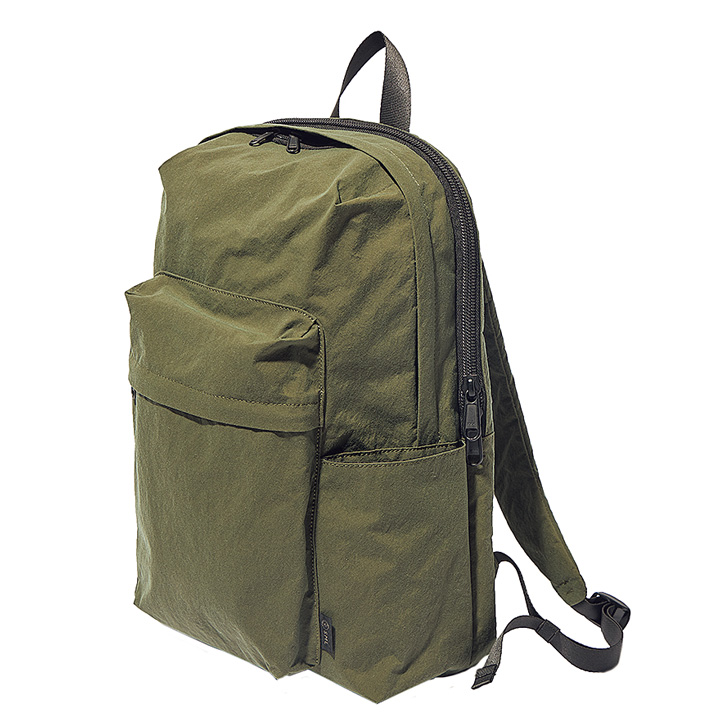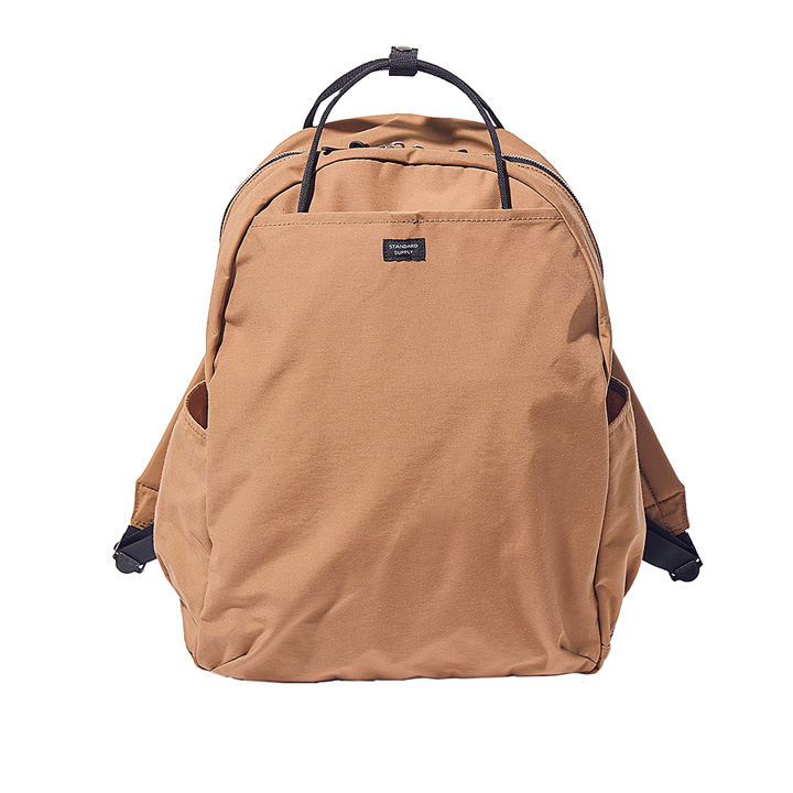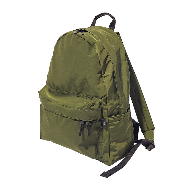 ジャパンブランド《エスエムエル》のデイパックは、はっ水性とハリ感のある「コンブ」素材を使用。自立する頼もしいつくり。