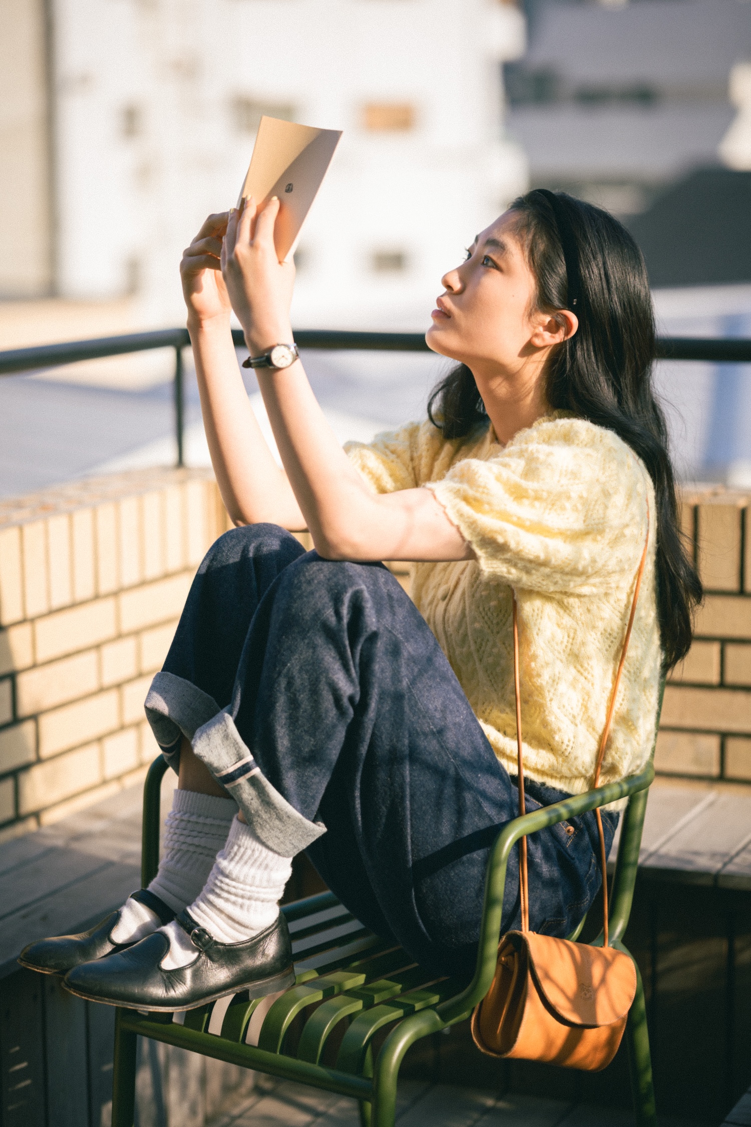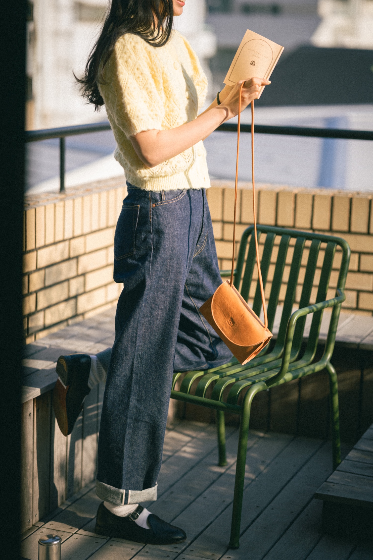 しっかりとした生地感が魅力の《ANATOMICA》のデニムパンツは、太めのストレートでどこかクラシックな佇まい。そんな一本には、やわらかなイエローカーディガンを合わせて、春らしい軽やかさをプラス。足元は白ソックス×レザーシューズで品よく整えて、全体をやさしくまとめるのがちょうどいい。お気に入りの本を片手に近くのカフェへ、なんて気ままなお出かけにもぴったり。デニムを主役にしながらも、どこかやわらかな空気を纏ったスタイルに。