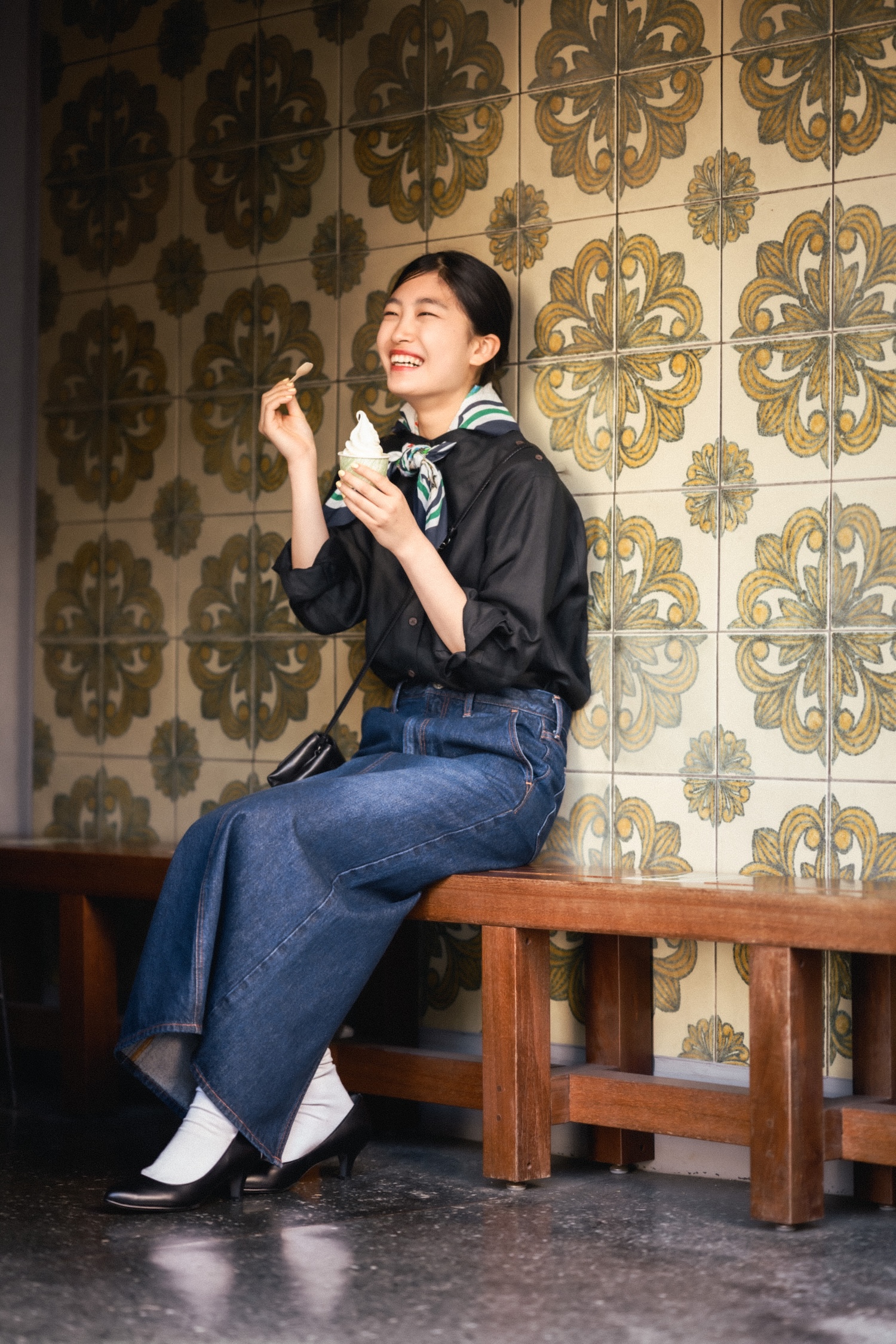そんな頼れるデニムを軸に、FUDGE FRIENDの栁沼芽以(身長170cm)がさまざまなコーディネートを着こなします。今回は“レディ”なデニムスタイルをご提案。