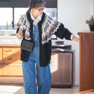 可愛らしいイメージのあるフレアスカートも、モノトーン+ブルーでまとめれば大人っぽくシックな雰囲気に。《To b. by agnès b.》のカーディガンは、鮮やかなブルーにひと目惚れして購入しました。タックインしてトップスをコンパクトにまとめると、低身長でもバランス良くロングスカートを着こなせます。