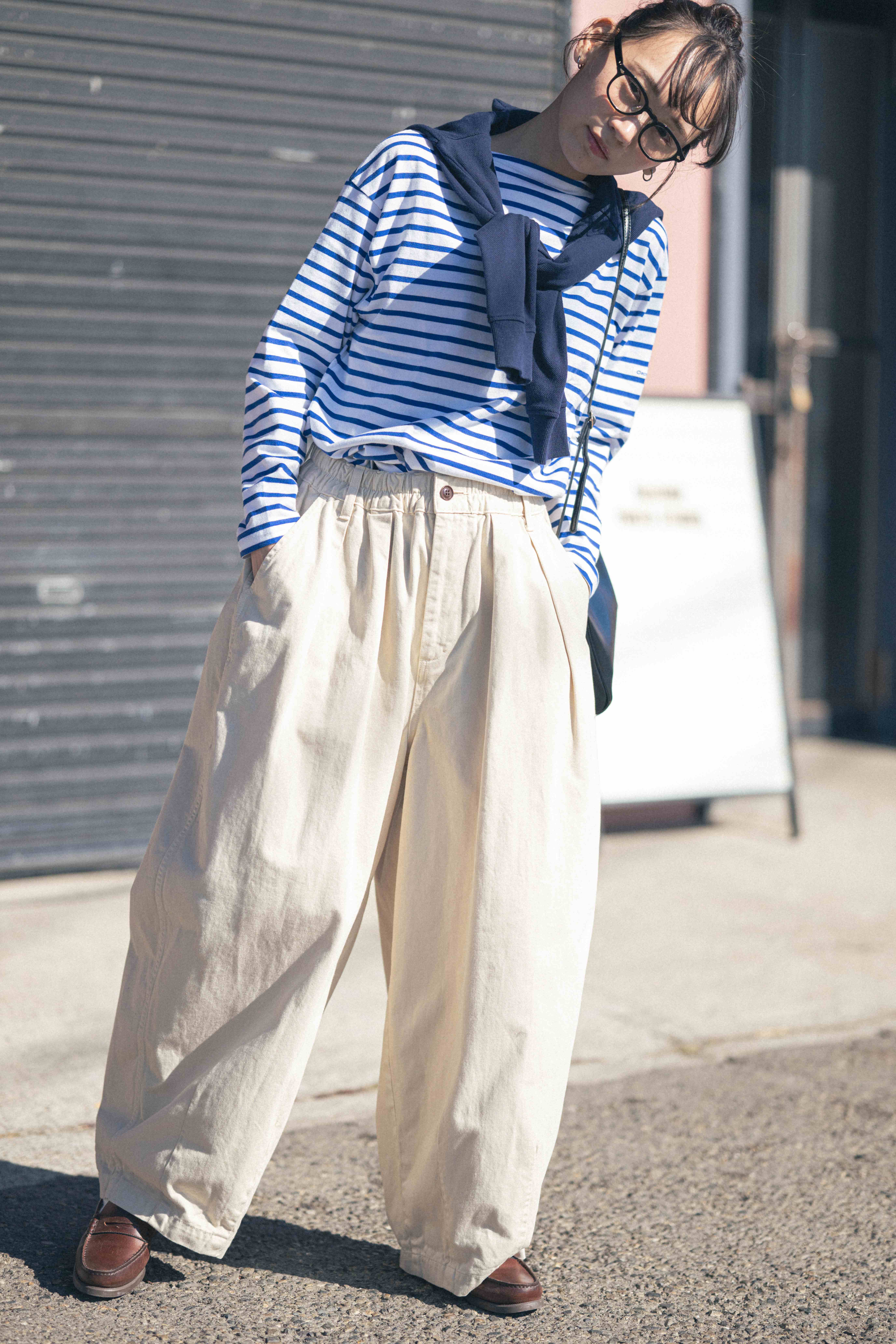 「《ハーベスティ》のバルーンパンツはロンTと合わせるのがお気に入りで、今ぐらいの季節によく活躍しています!ぽわんとふくらんだシルエットがポイントで、シンプルなコーディネートも可愛くなるんです」