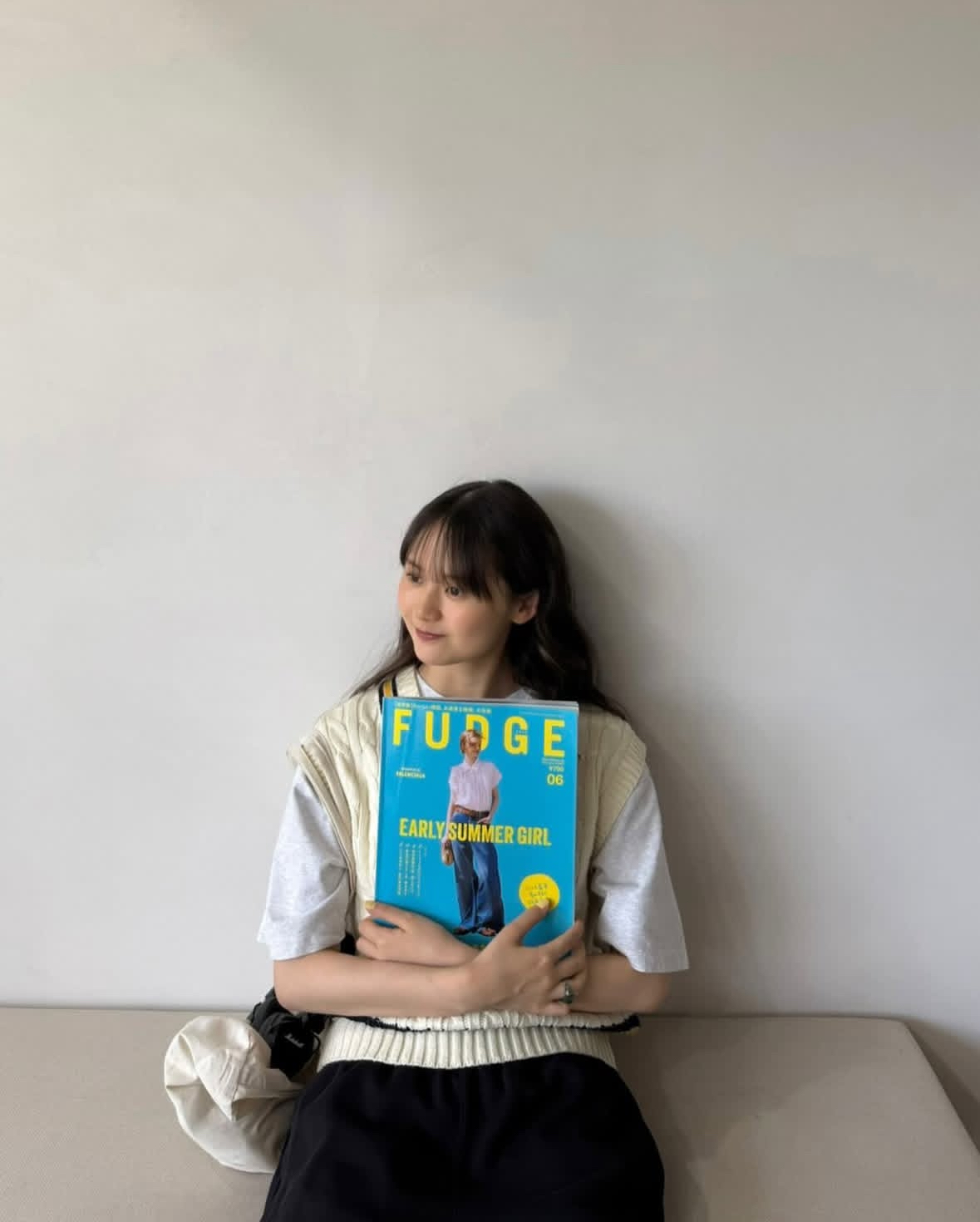 FUDGE FRIEND 唯一のママ。シンプルで品のあるコーディネートが上手。抜群の透明感とナチュラルな雰囲気に、モデルとしてのオファーが殺到。プライベートでは料理好きで、自家製スコーンの販売も開始。暮らしを丁寧に楽しむ姿に、同世代やママからの支持が集まっている。