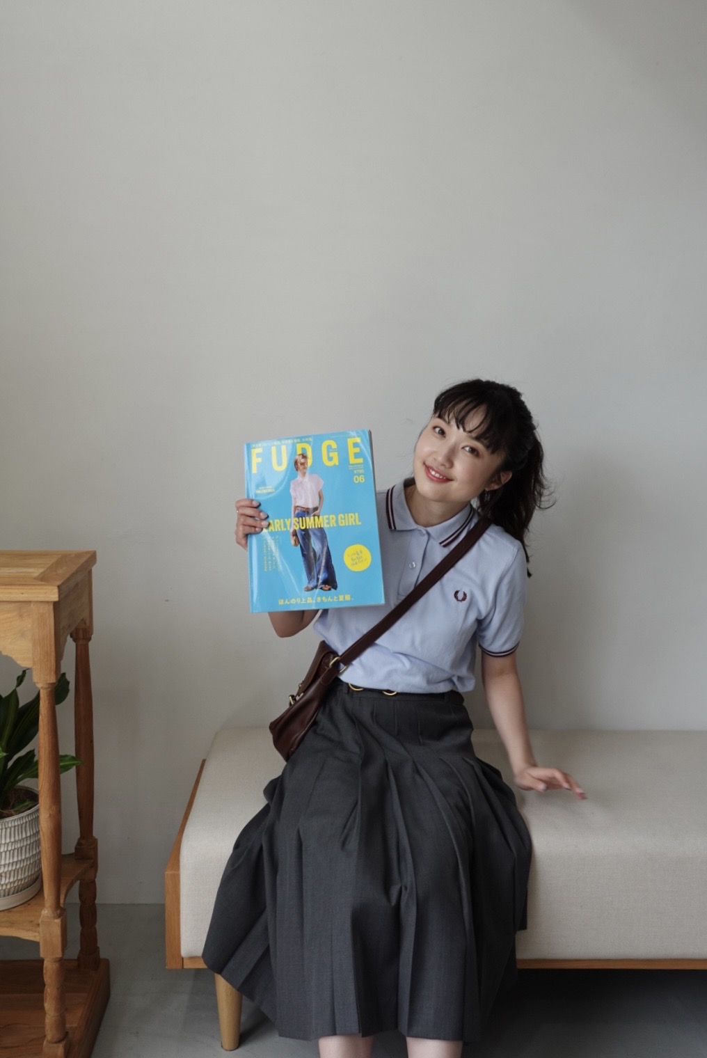 『FUDGE』愛読歴10年以上。まるでFUDGEの世界から出てきたような、カジュアル〜トラッドなファッションが得意。169cmの長身と透き通るような肌、しなやかなロングヘアを武器にモデルとして活躍。手先が器用で編み物やDIYを楽しむ一面も。元々は美容師を目指していたこともありヘアアレンジが得意!