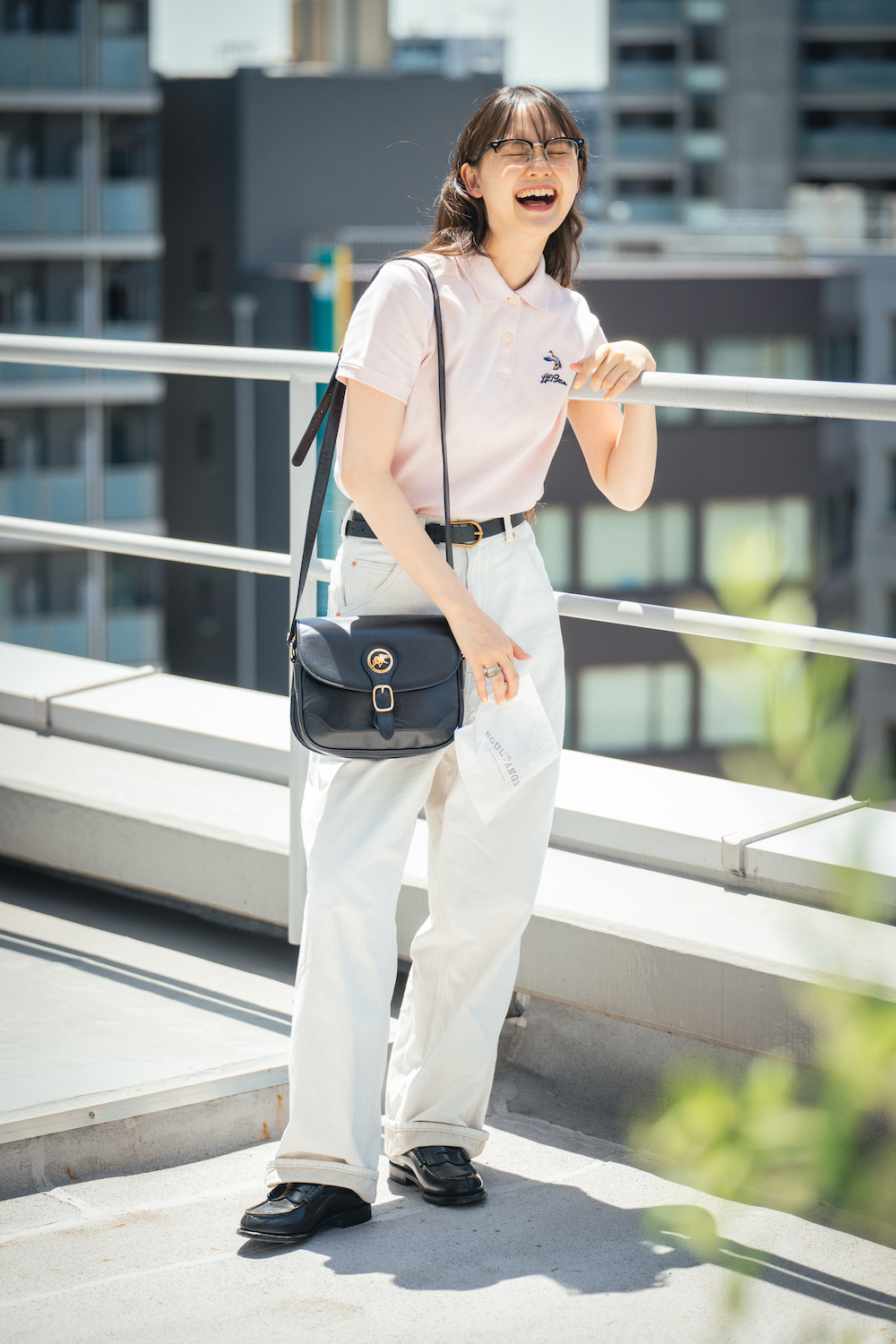 本人私物(ポロシャツ/L.L.Bean、パンツ/Shinzone、ソックス/靴下屋、シューズ/REGAL、バッグ/HUNTING WORLD、ベルト/Levi’s、メガネ/PARIS MIKI)