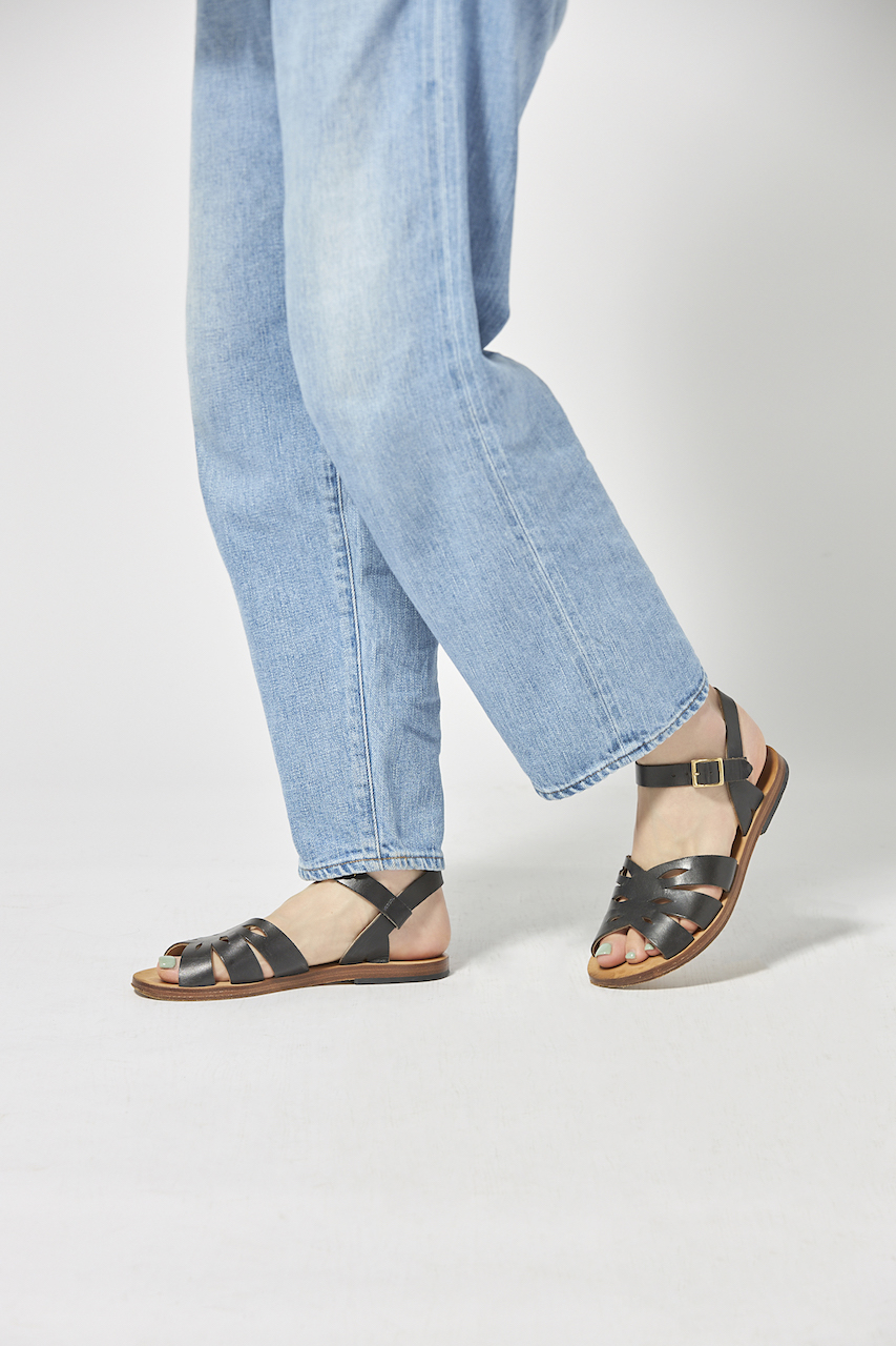 カジュアルなデニムコーデはキレイめなレザー小物で格上げ