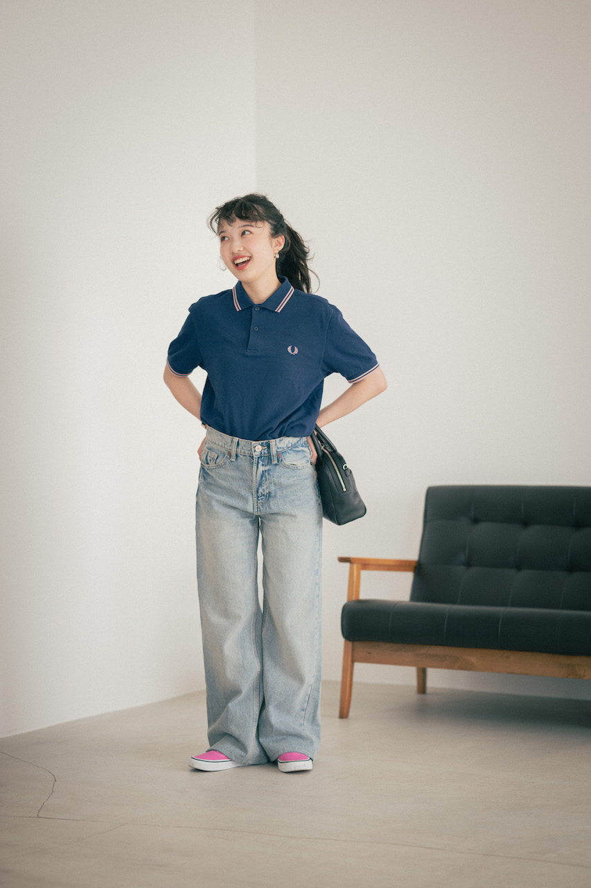 参照元:ポロシャツ×ワイドデニムコーデ。こなれるコツは“差し色”です!【FUDGE FRIEND おしゃれさんの毎日コーディネート vol.393|大島花菜】