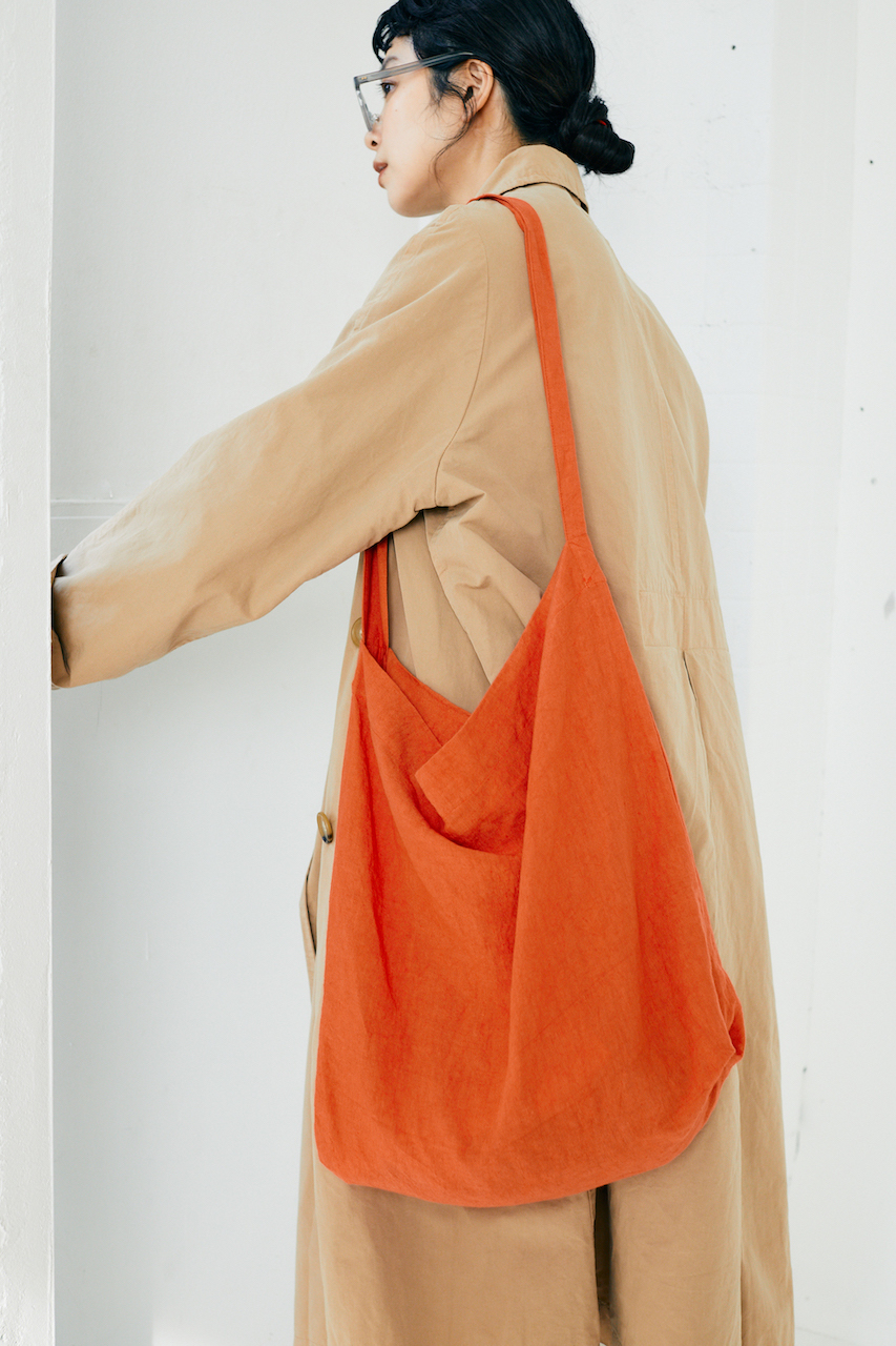 カジュアルな上下スウェットというタッグには、トラッドなトレンチコートを羽織って品よく見せるのが大人ポイント。発色のいいオレンジバッグでメリハリをつけて。