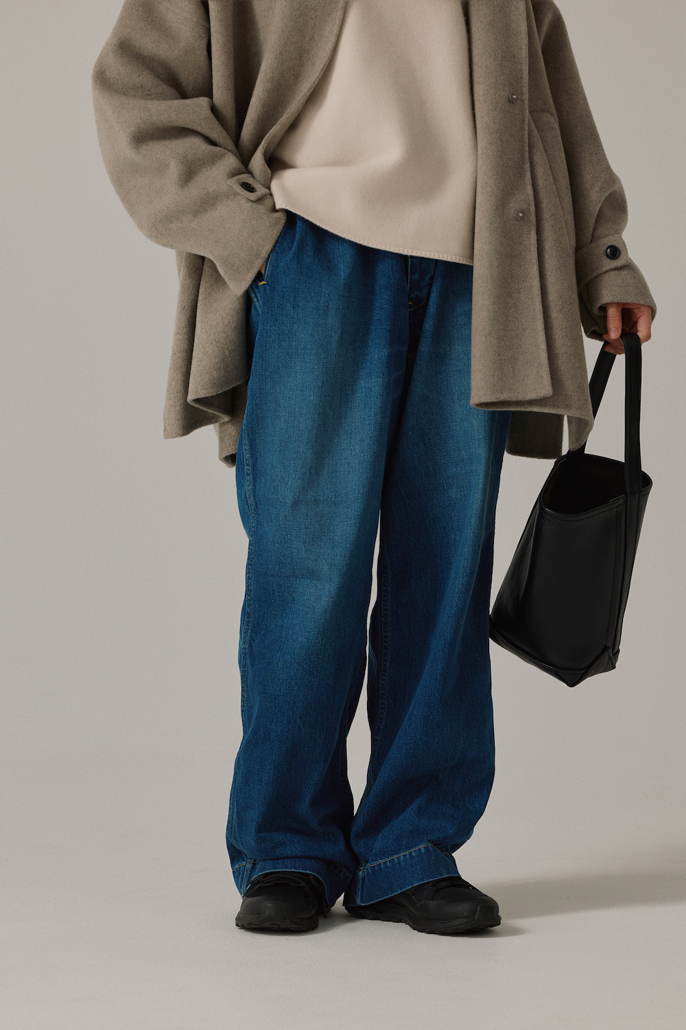 「最近、新しく購入したデニムパンツは、ゆったり長めのレングスがお気に入り。これまでは、割とコンパクトなデニムを履くことが多かったので、私自身、履いていて新鮮!かぐれのコートはとっても暖かくて冬に重宝。ニット素材でボリューム感があるので、《ミズノ》のごつめのスニーカーを合わせて、バランスをとっています」