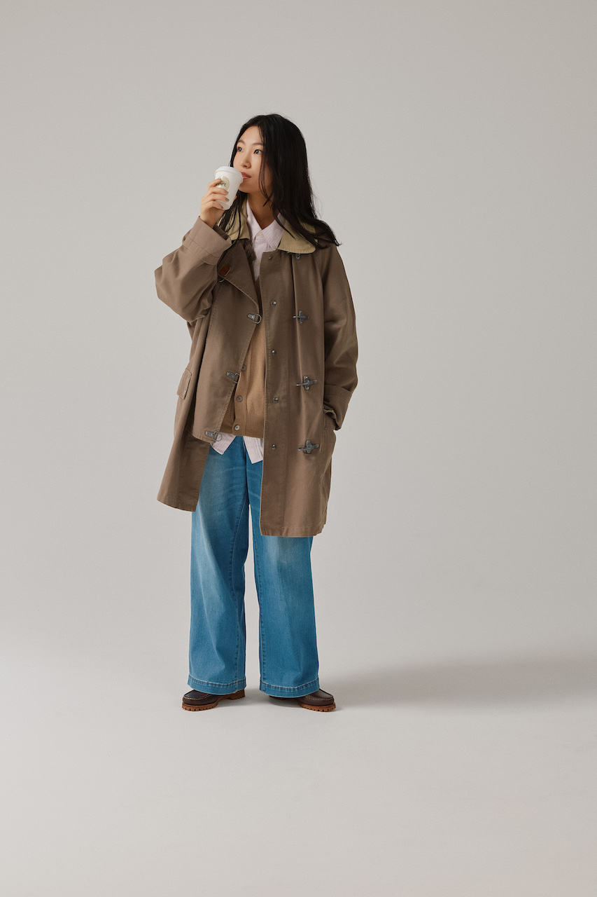 メンズライクなベージュアウターは大胆なBIGサイズで垢抜ける