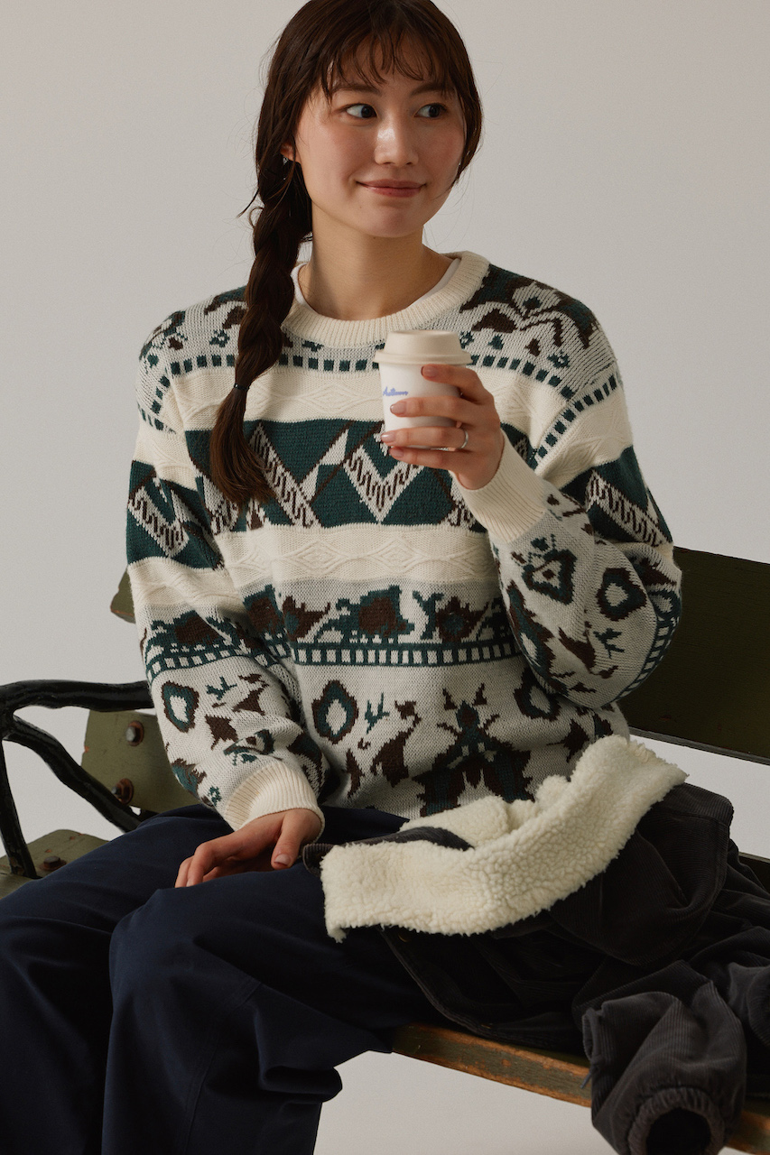 北欧を感じさせるセーターはレトロな色使いで愛らしい魅力を放つ