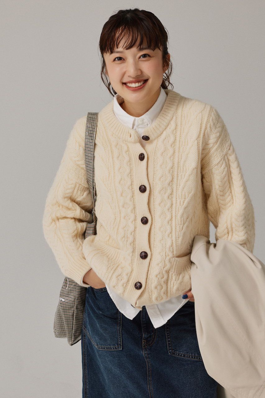 参照元:オフホワイトのざっくりカーディガンが主役!デニムスカートで大人カジュアルに【FUDGE FRIEND おしゃれさんの毎日コーディネート vol.633|大島花菜】