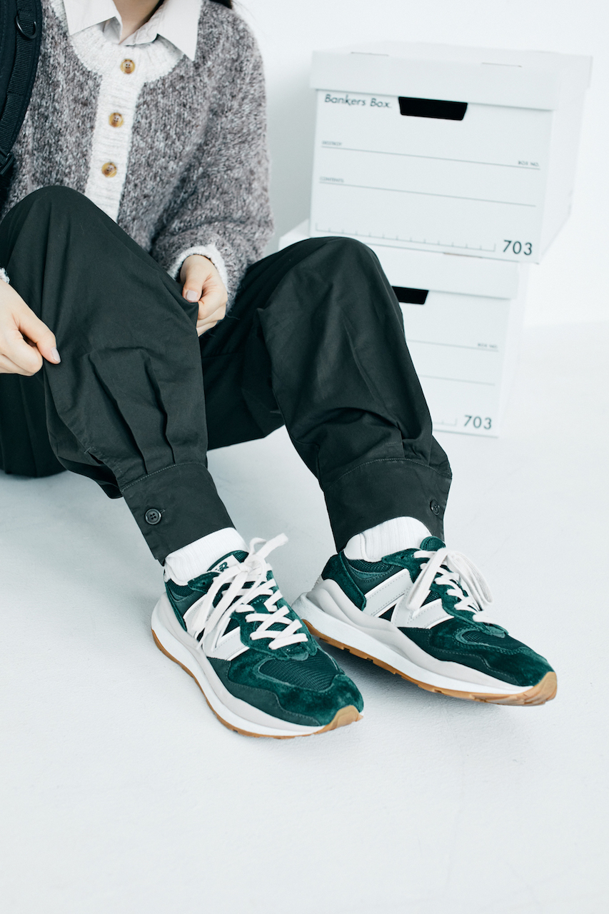 参照元:《ニューバランス》のグリーンのスニーカーでニットスタイルを軽快に【FUDGE FRIEND おしゃれさんの毎日コーディネート vol.461|うさみ】