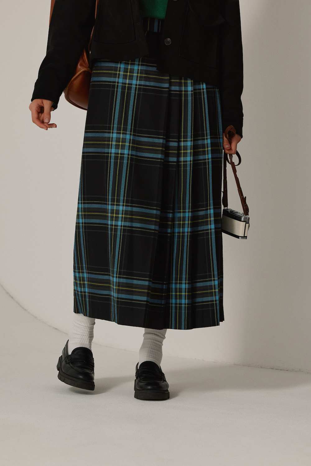 「ロングスカート、ストレートパンツ、縦のラインが目立つチェック柄やストライプ柄。小柄な女の子に憧れていた頃もあったけど、最近は高身長であることを自分らしさと捉えて、チャームポイントに見せてくれるアイテムを着るようにしています。今日は、タータンチェックのロングスカートを相棒にした着こなし。だんだんと春を感じるような日も増えてきたから、薄手のニットを選んで、スカートにイン!スカートの存在感が引き立つようにして、脚長効果を狙ってみました。スエードジャケットやブラウンの小物を合わせるきちんとムードが最近の気分です」