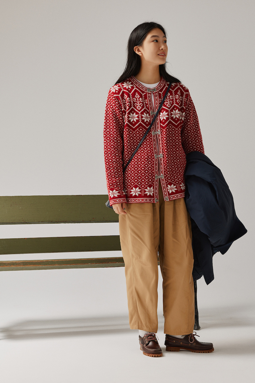 参照元:北欧柄の赤いカーディガンは人生初古着!丈短チノパンで軽やかに着こなし【FUDGE FRIEND おしゃれさんの毎日コーディネート vol.652| 栁沼芽以】