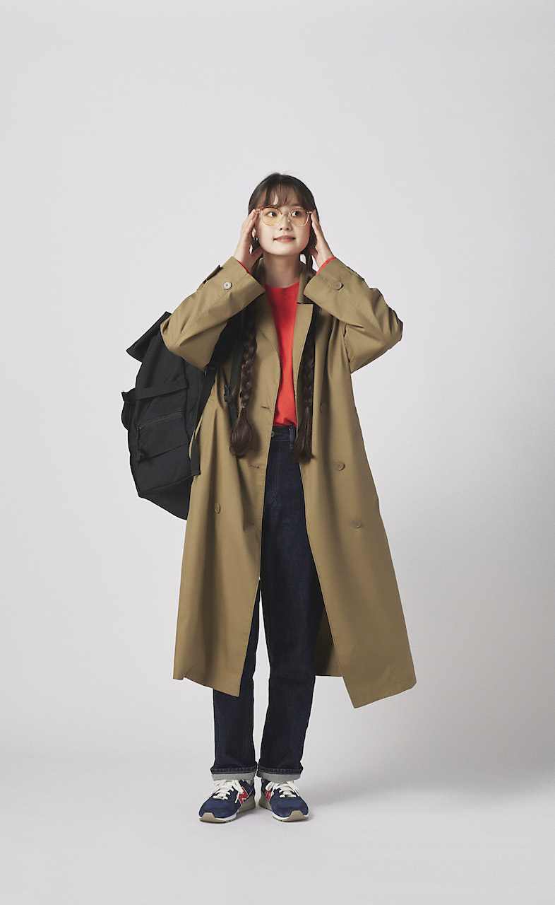 秋も春も人気のトレンチコートには、春らしいオレンジカラーをはさんで華やかさを纏って。カジュアルなバックパックやスニーカーでボーイッシュに仕上げるとラフな雰囲気がアップ。