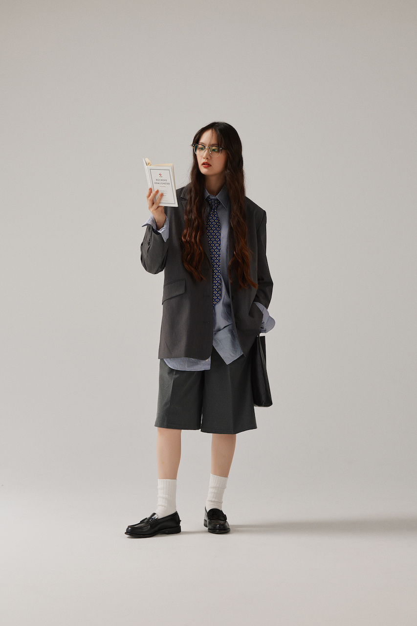 きちんとしたテーラードジャケットをハーフパンツでお洒落に着崩して