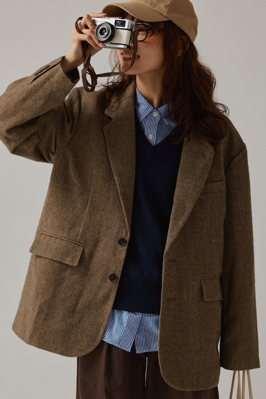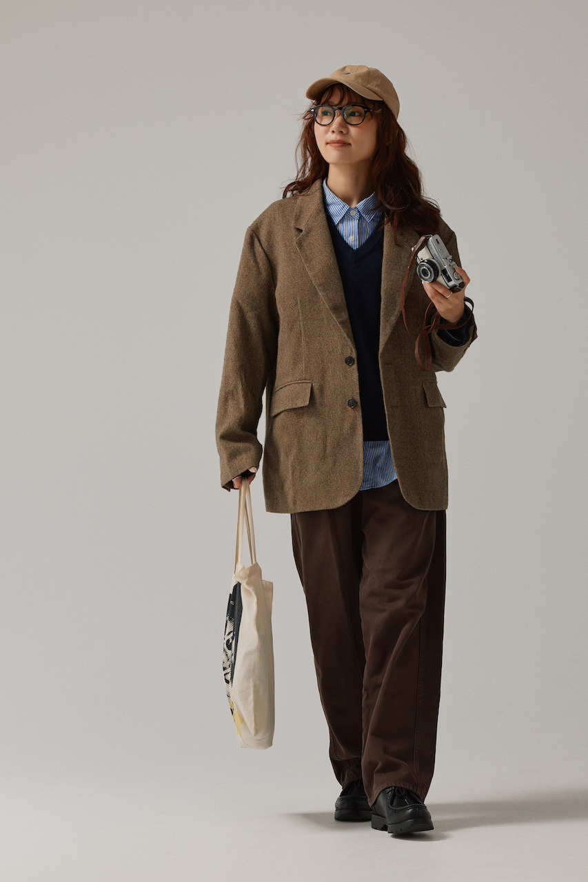 参照元:ブラウン×ブルーで爽やかに。メンズサイズのツイードジャケットで楽しむトラッドな重ね着【FUDGE FRIEND おしゃれさんの毎日コーディネート vol.650|UMI】