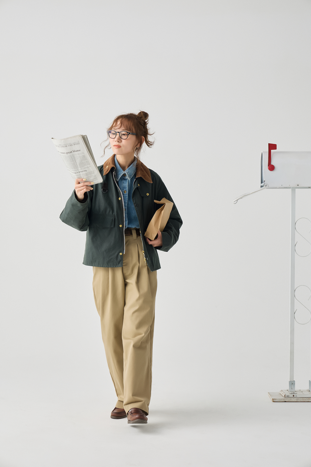 本人私物(アウター/Barbour、トップス/crie conforto、パンツ/Shinzone、シューズ/Paraboot、めがね/MOSCOT)