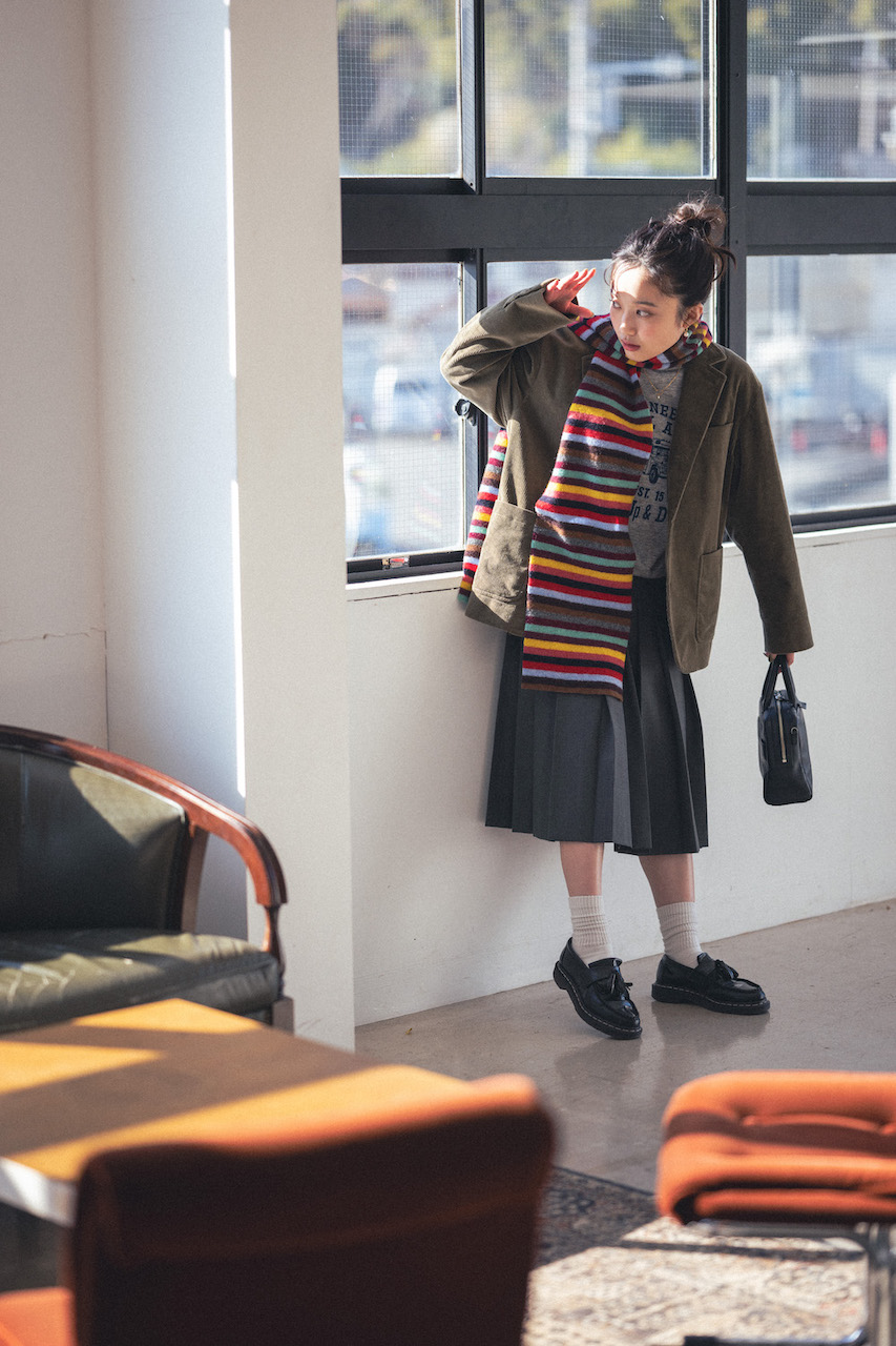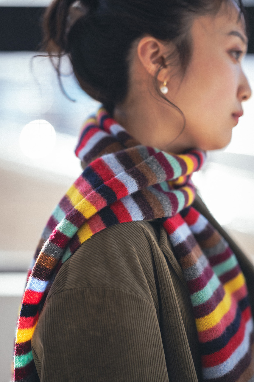 参照元:冬の寒さに逆戻り。マルチボーダーのマフラーでおしゃれに防寒を【FUDGE FRIEND おしゃれさんの毎日コーディネート vol.505|大島花菜】