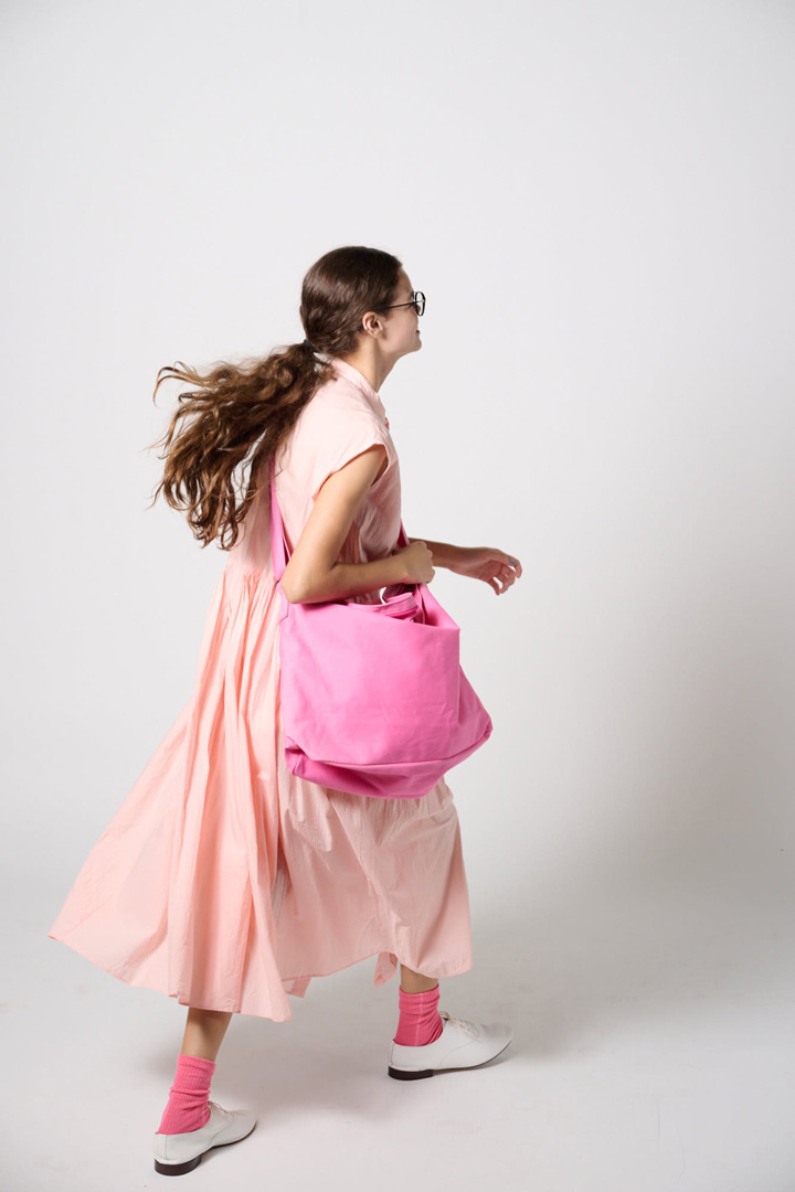 ワンピース¥69300 /TOUJOURS(トゥジュー 代官山ストア)、メガネ¥19800 / THE BEDFORD HOTEL( キングスター)、バッグ¥5390/ WILD WALLETS(城屋)、ソックス¥1980 / TEMBEA(テンベア トウキョウ)、シューズ¥67100 / Repetto(ルック ブティック事業部)