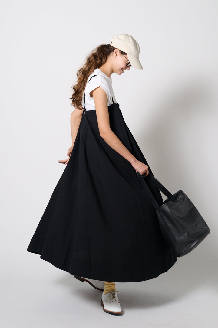 ワンピース¥46200 / THE SHINZONE(シンゾーン ルミネ新宿店)、T シャツ¥7150/GOOD ROCK SPEED(エリオポール代官山)、キャップ¥4620 /New Era ®️(ニューエラ)、メガネ¥19800 /THE BEDFORD HOTEL(キングスター)、バッグ¥24200/LOISIR(ロワズィール)、シューズ¥64900 / SANDERS(サンダース ジャパン)、その他/スタイリスト私物