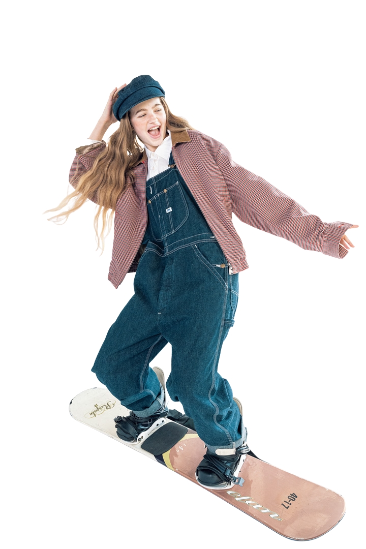 今や冬季レジャーの大定番、スノーボードは、実は1960年代に誕生した比較的新しいスポーツ。子どものおもちゃが原型とされ、1998年の長野オリンピックより正式種目に。抜群の安定感を誇るのはやはり、スノーボードの発祥国アメリカ。《リー》が1911年に製造を開始したオーバーオールは、織り密度の工夫により軽く動きやすく、それでいて丈夫。ワークウエアの原点であり、名作です。