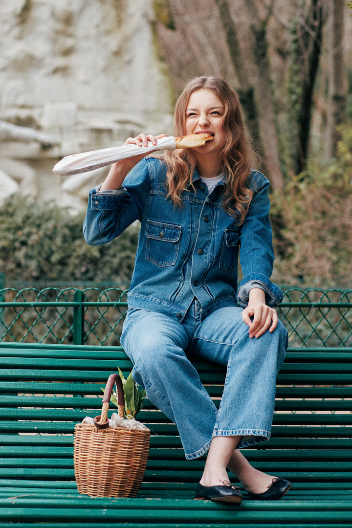 ジェーン・バーキンは、夏のリゾートアイテムだったカゴを、雪の降るパリでも、華やかなパーティやレストランでも携え、日常着へと定着させました。からだに馴染んだデニムパンツに白Teeという少年のようなスタイルに、どこへでも連れて行く相棒のカゴバッグ。この無造作な格好良さこそが彼女のスタイルの真骨頂。まだちょっと寒いから、お気に入りのアウターを羽織って、仕上げはビッグスマイルを。