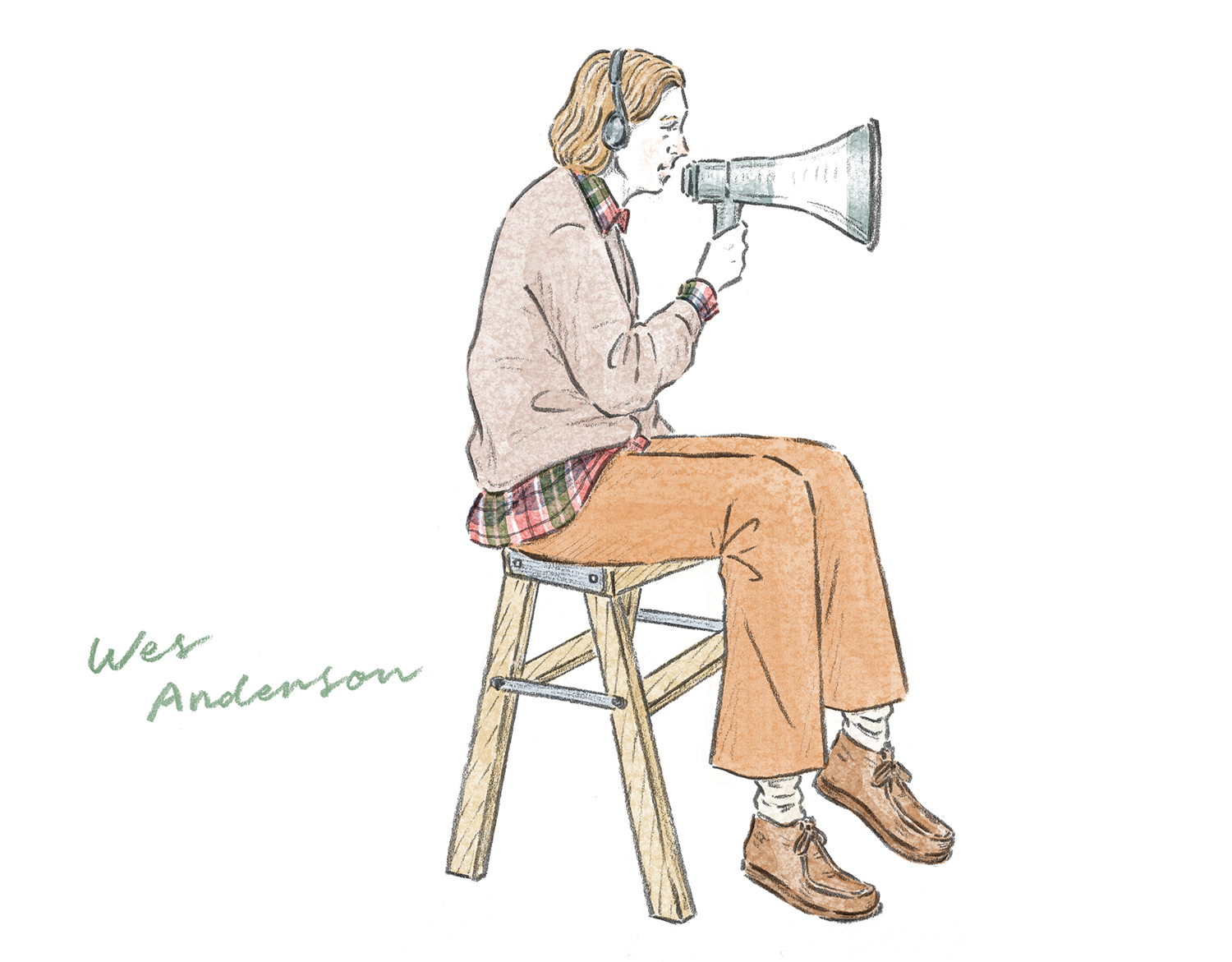 お洒落なことでも知られる、アメリカの監督で映画プロデューサーのウェス・アンダーソン。彼の足元の定番こそ「ワラビー」です。会見など公式な場であれば、コーデュロイのオーダースーツに身を包み、その足元にベージュやブラウンの「ワラビー」を履いて。撮影現場であれば、ジャケットを脱いで、上半身はチェック柄のシャツ&セーターに代え、やはり足元は「ワラビー」を。