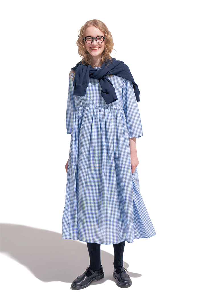 「ギンガムチェック」の織物は、18世紀の中ごろに、イギリスのマンチェスターあたりで織られたのが始まりだといわれています。「ギンガム」というその呼び名の由来は、マレー語でシマ模様を意味する「Genggang」を語源としているとする説や、フランスの地名「Guingamp(ガンガン)」が関係しているとする説などさまざまな言われがあります。ユニフォーム、ブラウス、ワンピース、エプロンからインテリアなどまで広く用いられる柄ですが、その爽やかさと清潔感から、ファッションシーンでは比較的夏用アイテムに使われる機会が多いと入れるかもしれません。