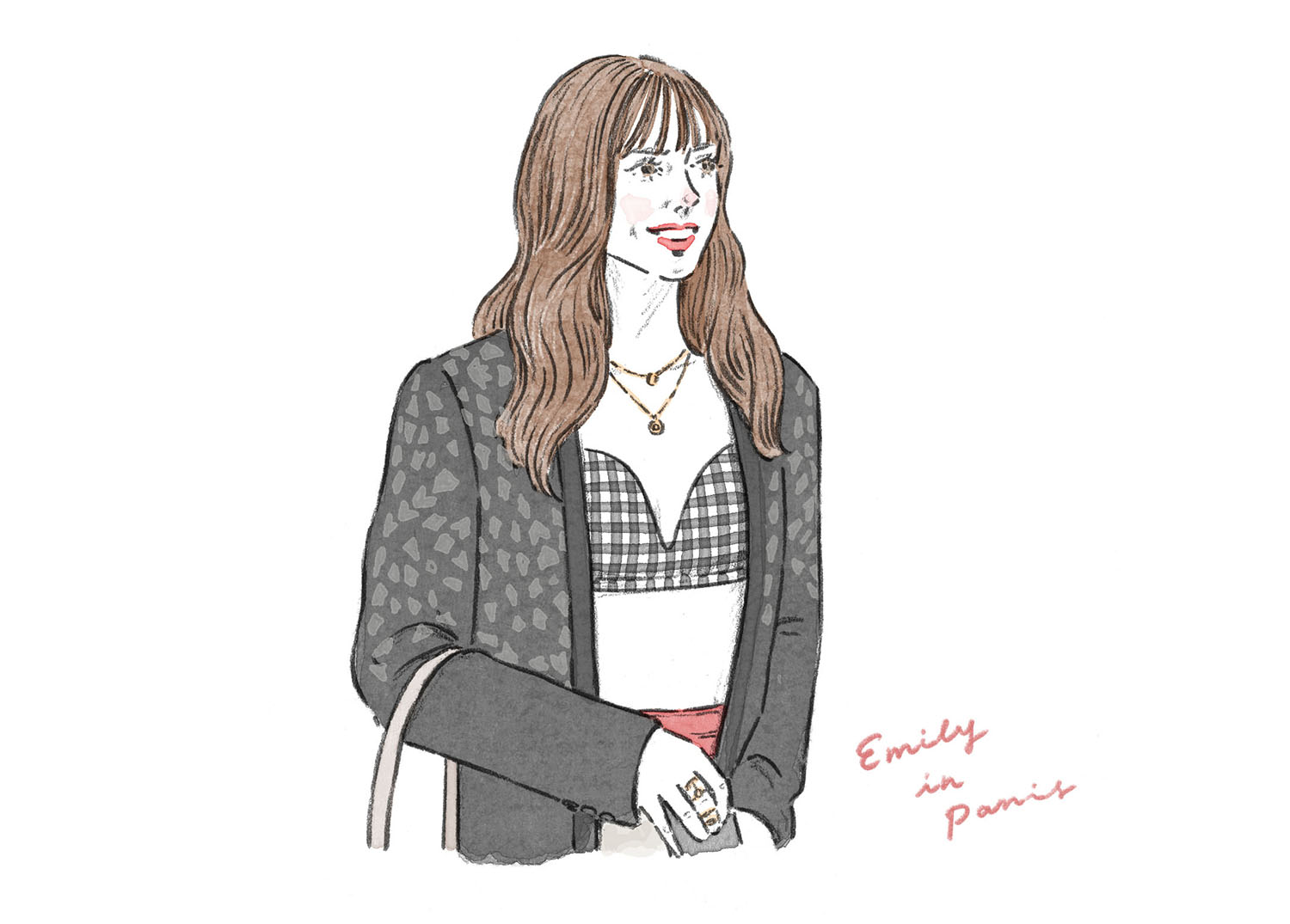 NETFLIXのドラマシリーズ『エミリーパリへ行く』でリリー・コリンズ演じるエミリーが、頻繁に「ギンガムチェック」のアイテムを身に着けて登場しています。柄自体に品があるために、派手色を選んでも肌見せコーデで取り入れても、トゥーマッチに見えない、魔法の柄だということが、彼女の着こなしを見ているとよくわかります。例えばほら、こんなふうに、ジャケットの中が、シャツではなくビキニトップだったとしても……。きちんと見せたい、おりこうさんっぽく仕上げたい……「ギンガムチェック」はそんなとき、とても頼りになる柄だと言えそうです。