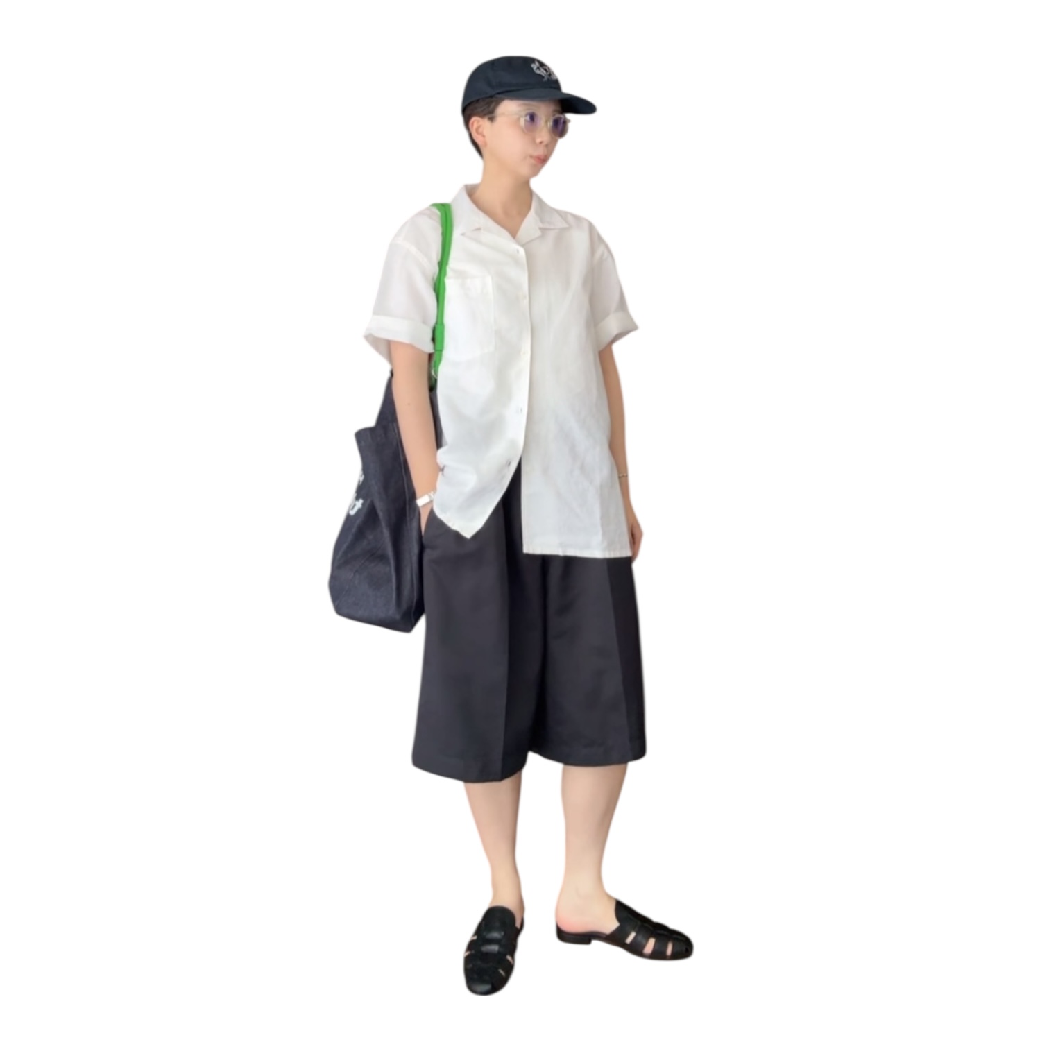 「バミューダ」とは「バミューダショーツ」ともいわれ、膝上丈の細身のパンツです。裾に折り返しがつくこともあります。